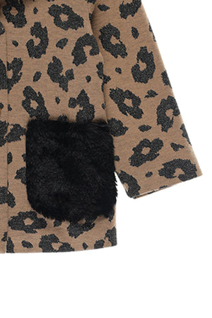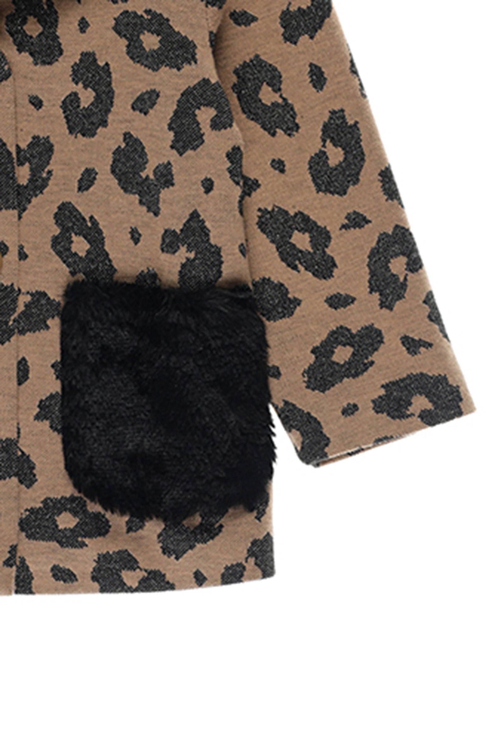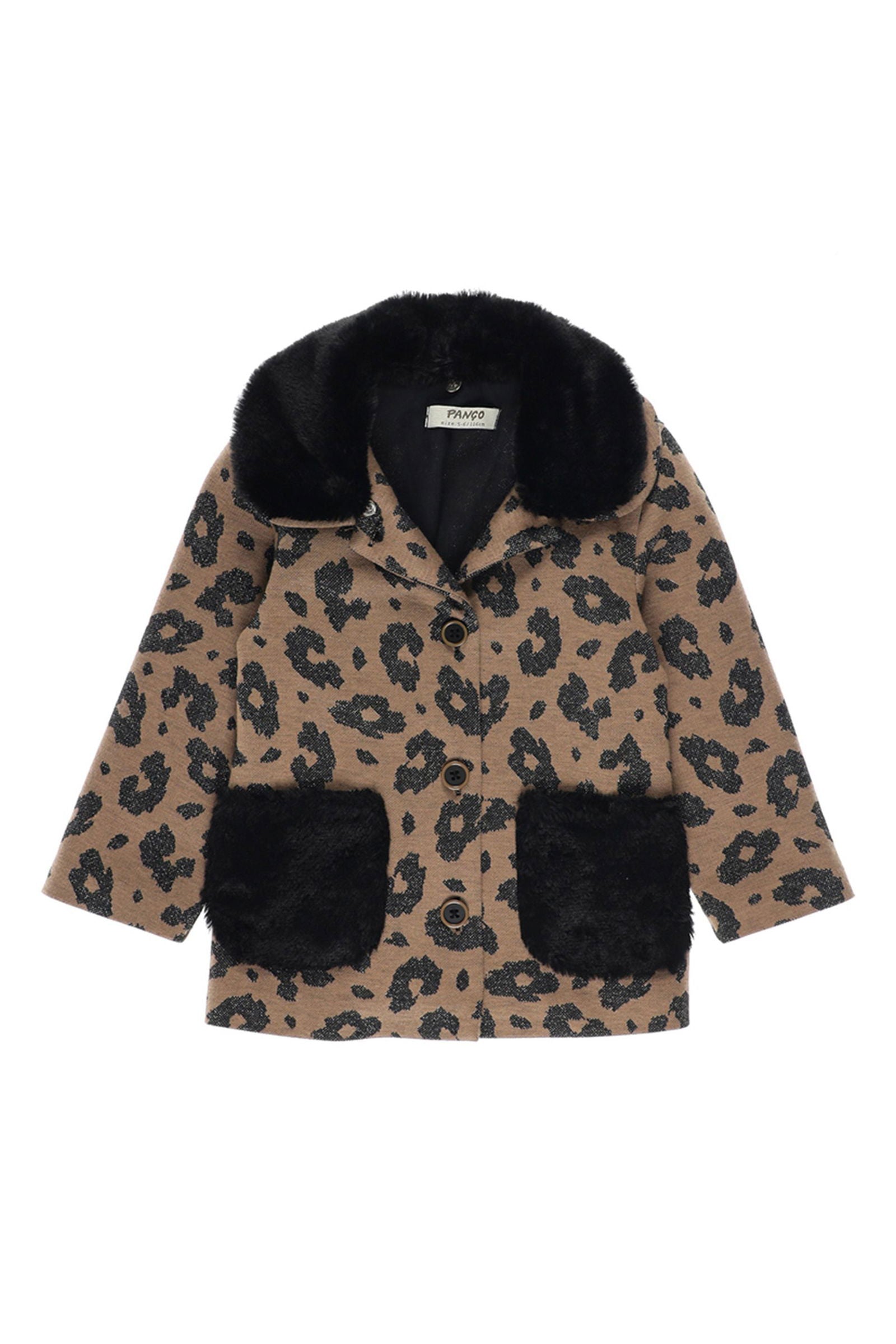 Palton elegant cu blanita, PANCO - Chic, Maro - Animal Print, pentru fetite