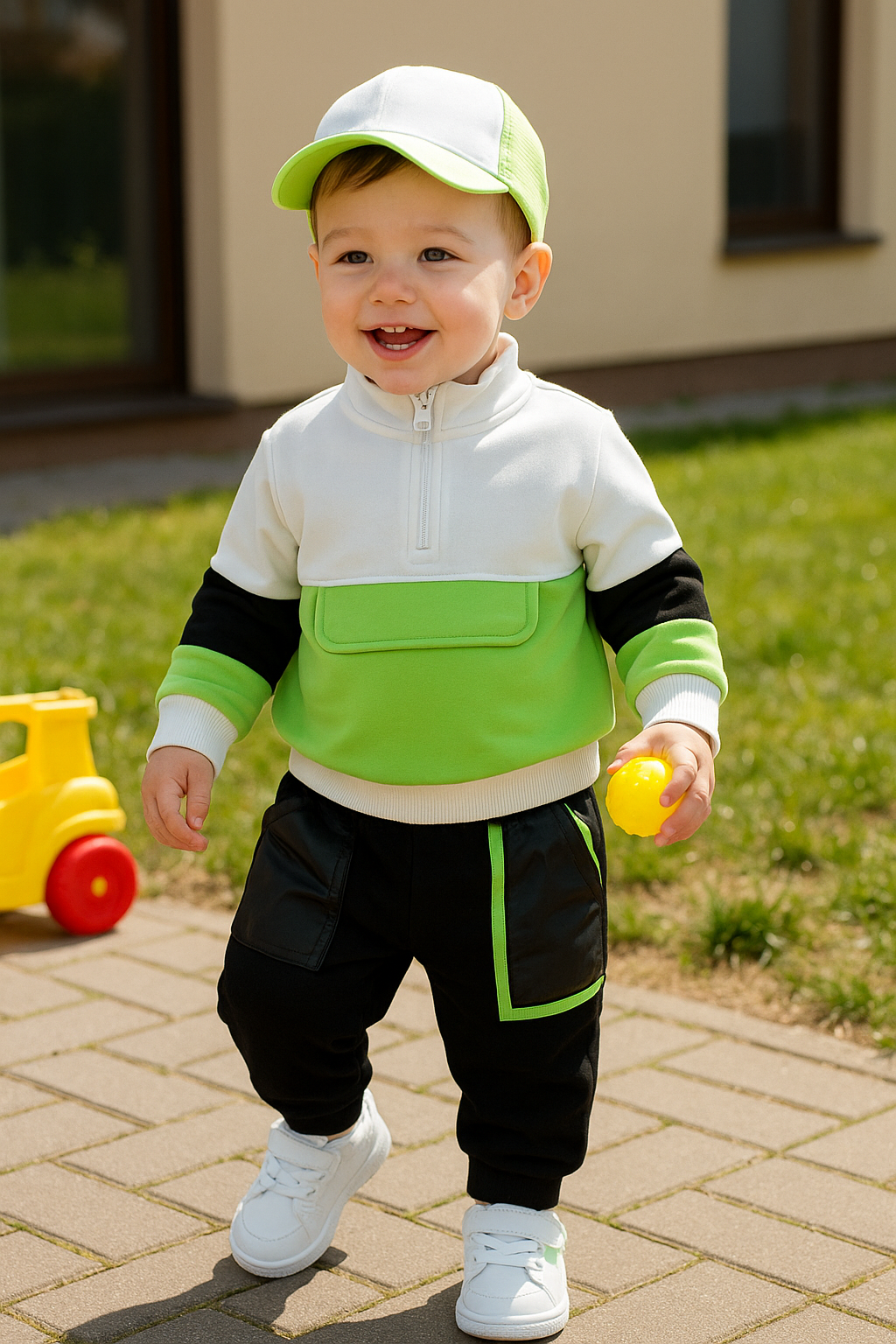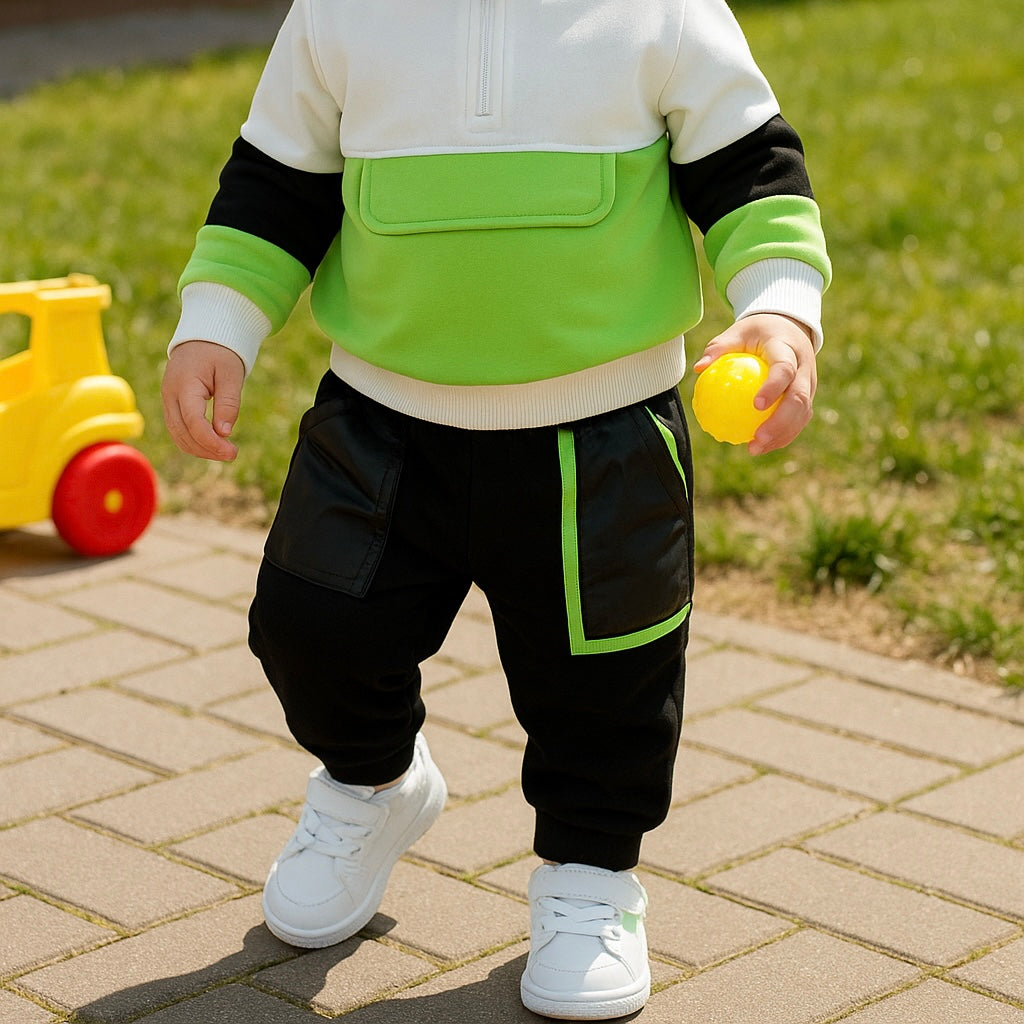 Pantalonii sport cu buzunare Verde Fosforescent PANCO sunt alegerea ideala pentru parintii care cauta imbracaminte practica si durabila pentru baietii lor.