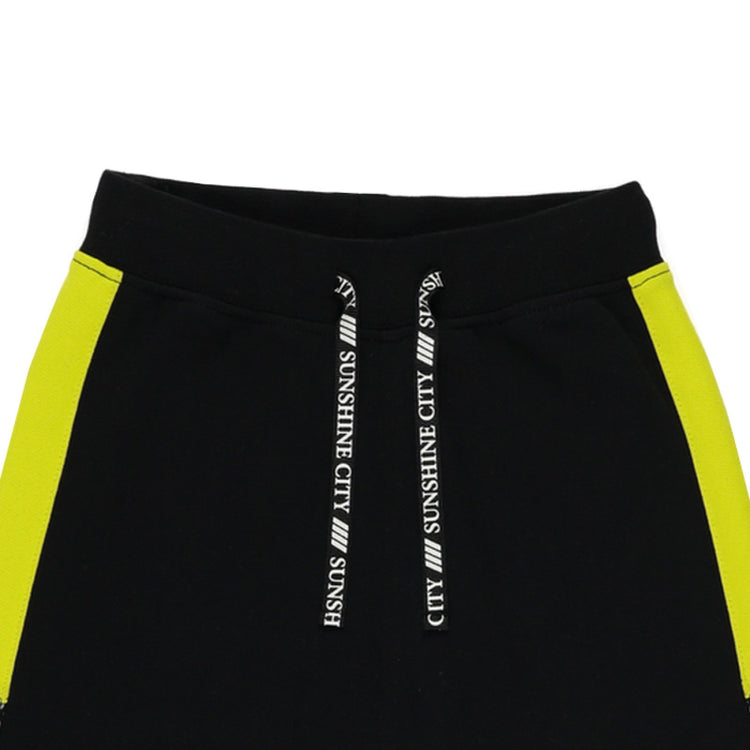 Pantaloni sport cu dunga galbena in parti PANCO - City Boys, Negru si Galben Fosforescent, pentru baietei