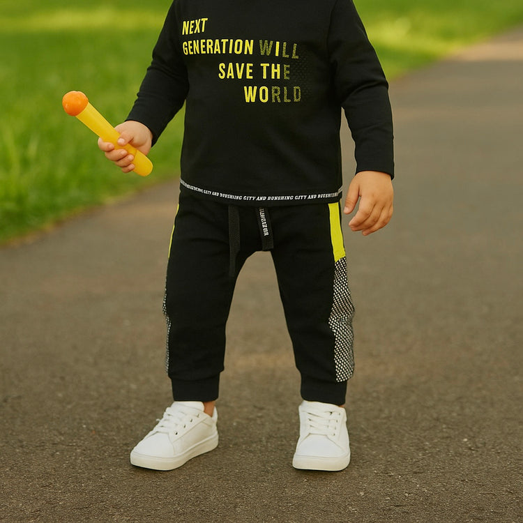 Pantaloni sport PANCO - City Boys, Negru si Galben Fosforescent, pentru bebe baietei