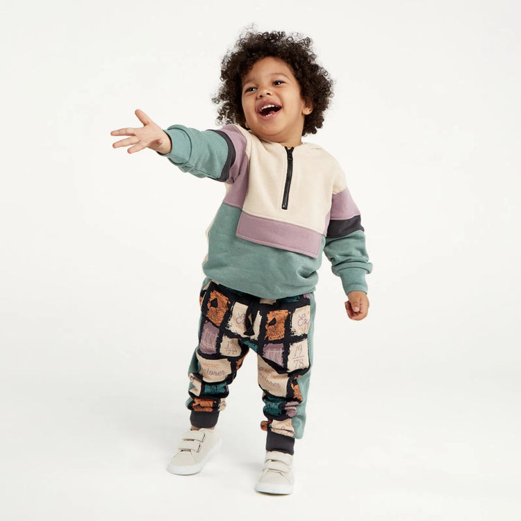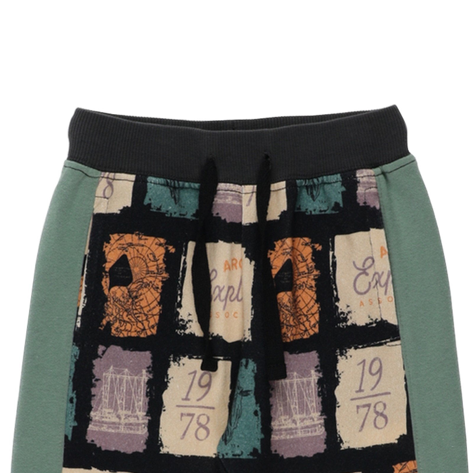 Pantaloni sport cu imprimeu patratele colorate PANCO - Discovery, Verde Mint, pentru baietei
