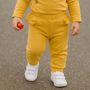 Pantaloni de trening lungi cu volanas in talie, PANCO - Retro Journey, Galben, pentru fetite