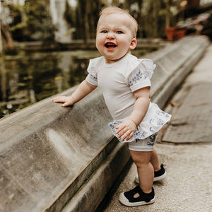 Explorati colectia noastra de Pantaloni scurti bufanti EEVI Bloomers - Botanic, conceputa special pentru fetite. Acesti pantaloni scurti albi cu flori albastre sunt ideali pentru micutele voastre, oferindu-le confortul si eleganta necesara. Acestia mascheaza foarte bine pampersul, adaugand un aer vesel si atractiv bebelusei tale.