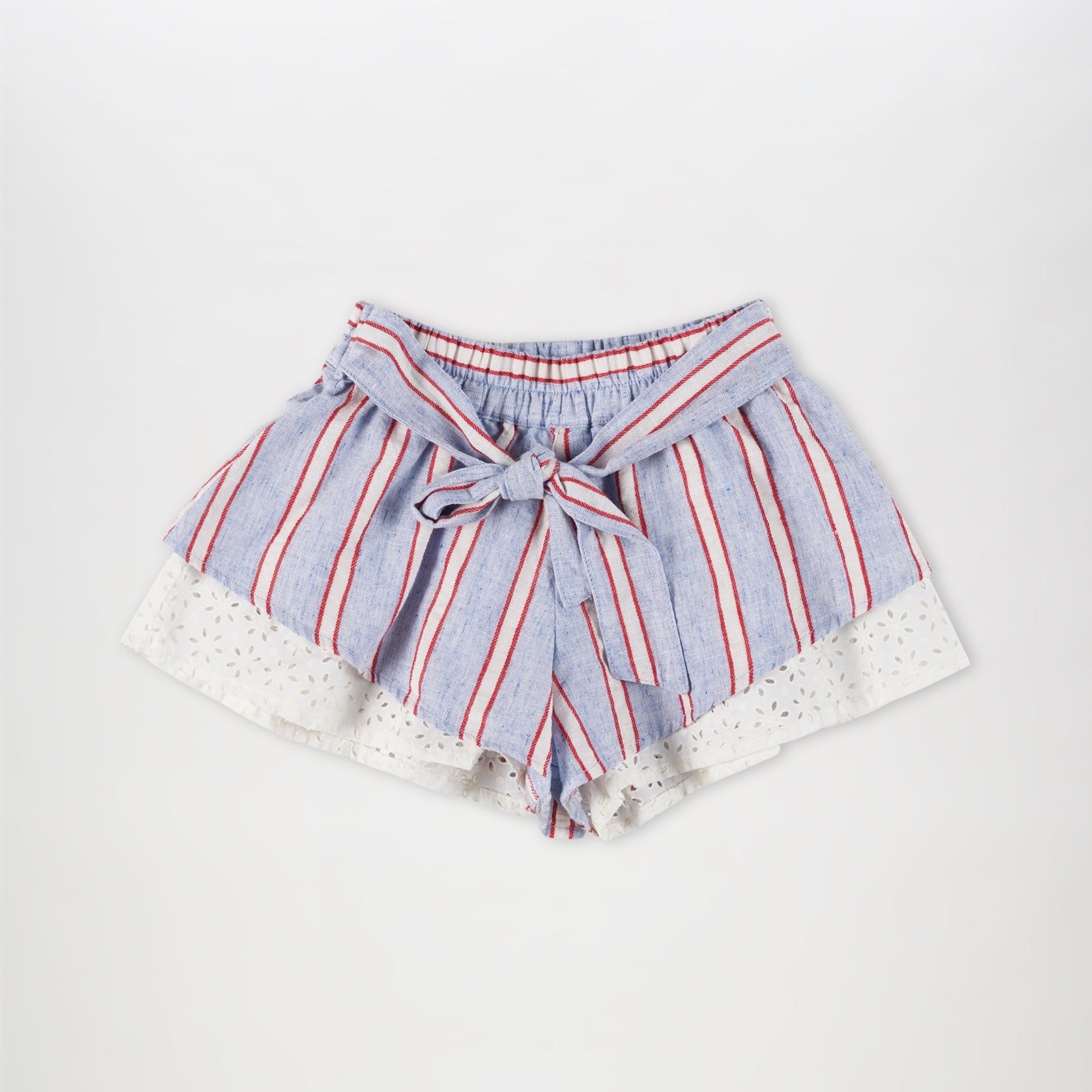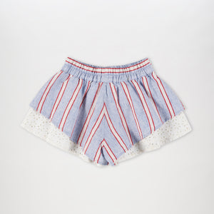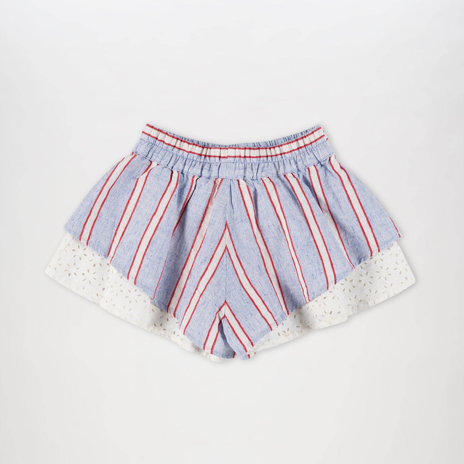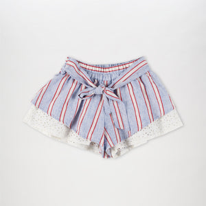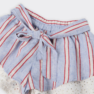 Pantaloni scurti cu detaliu dantela PANCO - Adelina, Bleu cu dungi rosii, pentru fetite