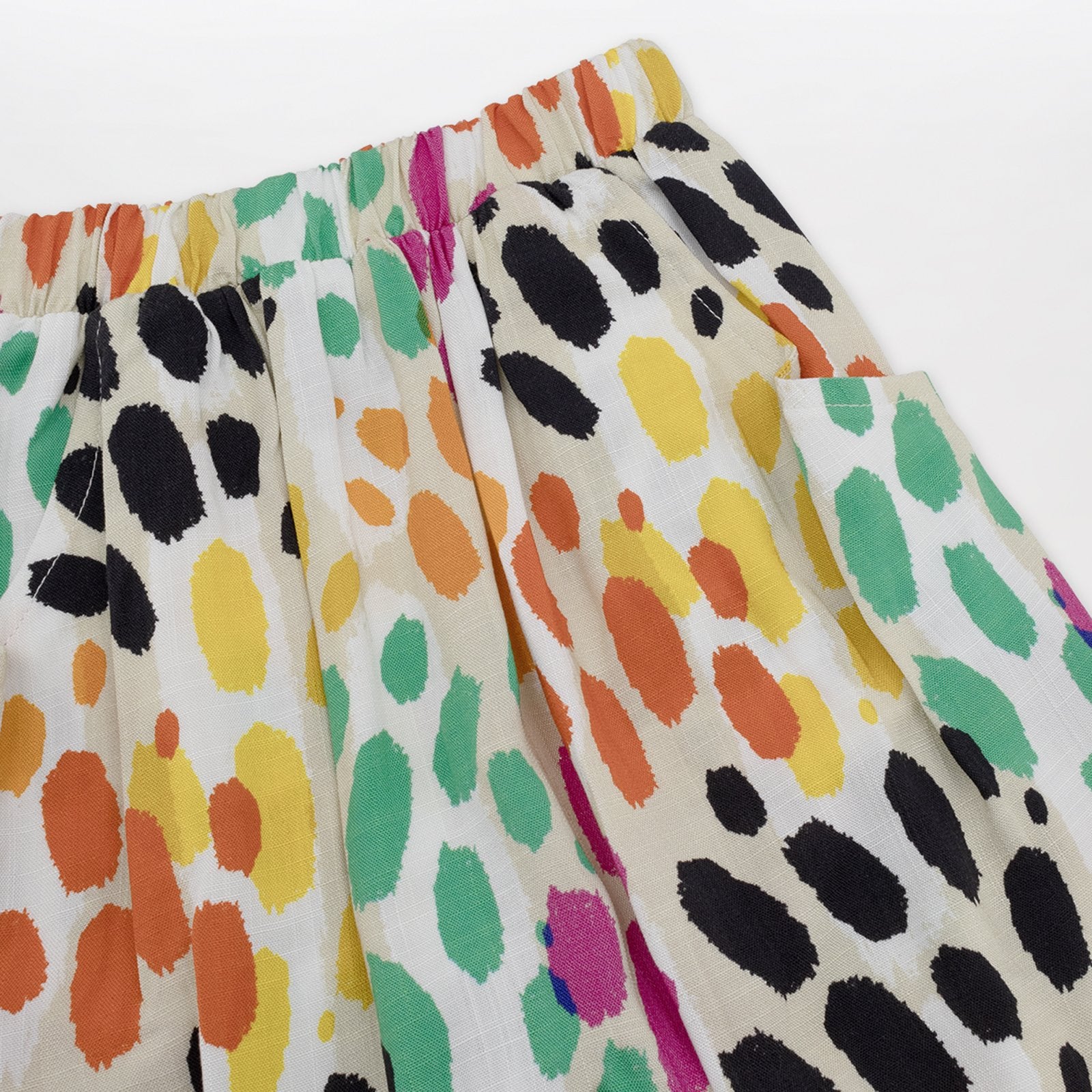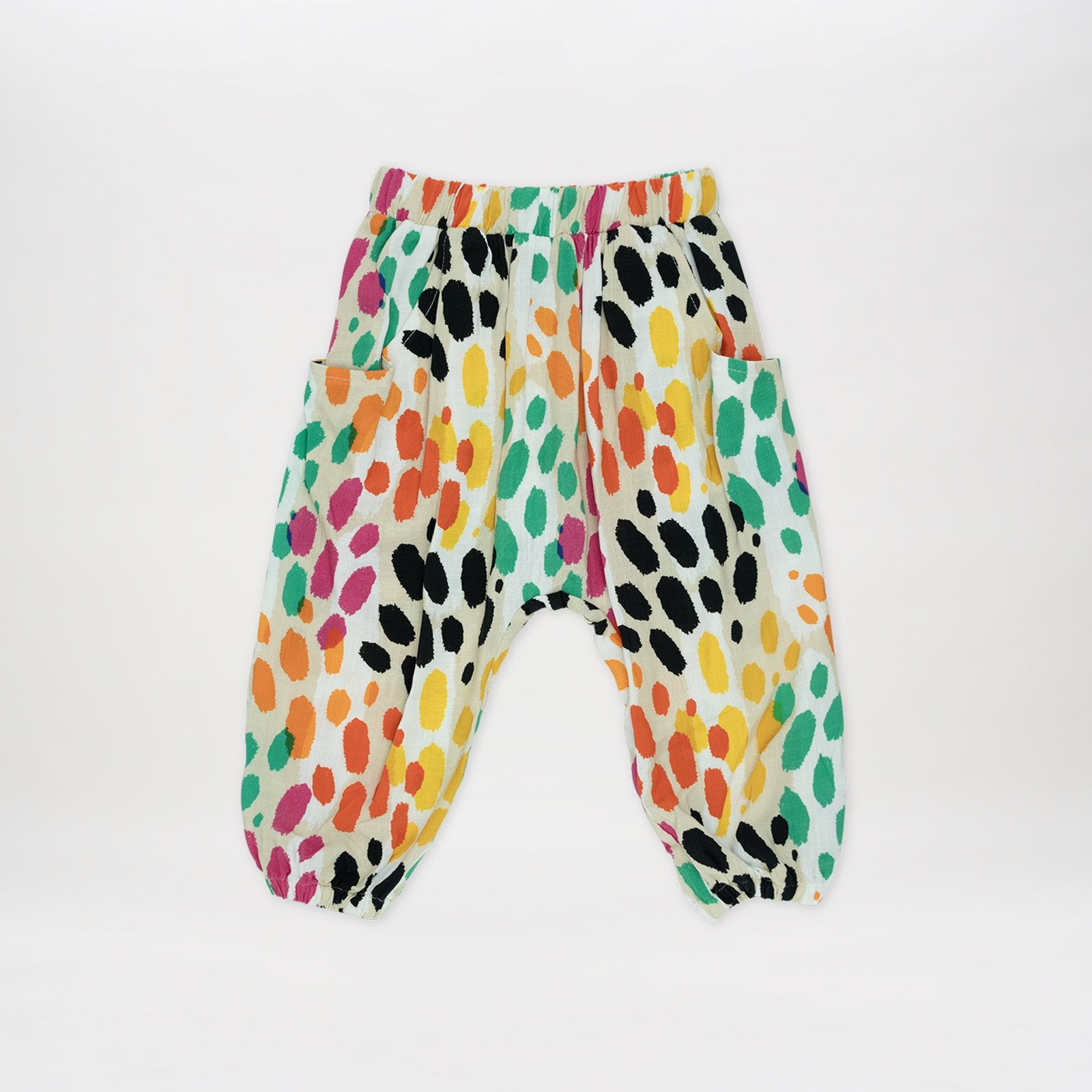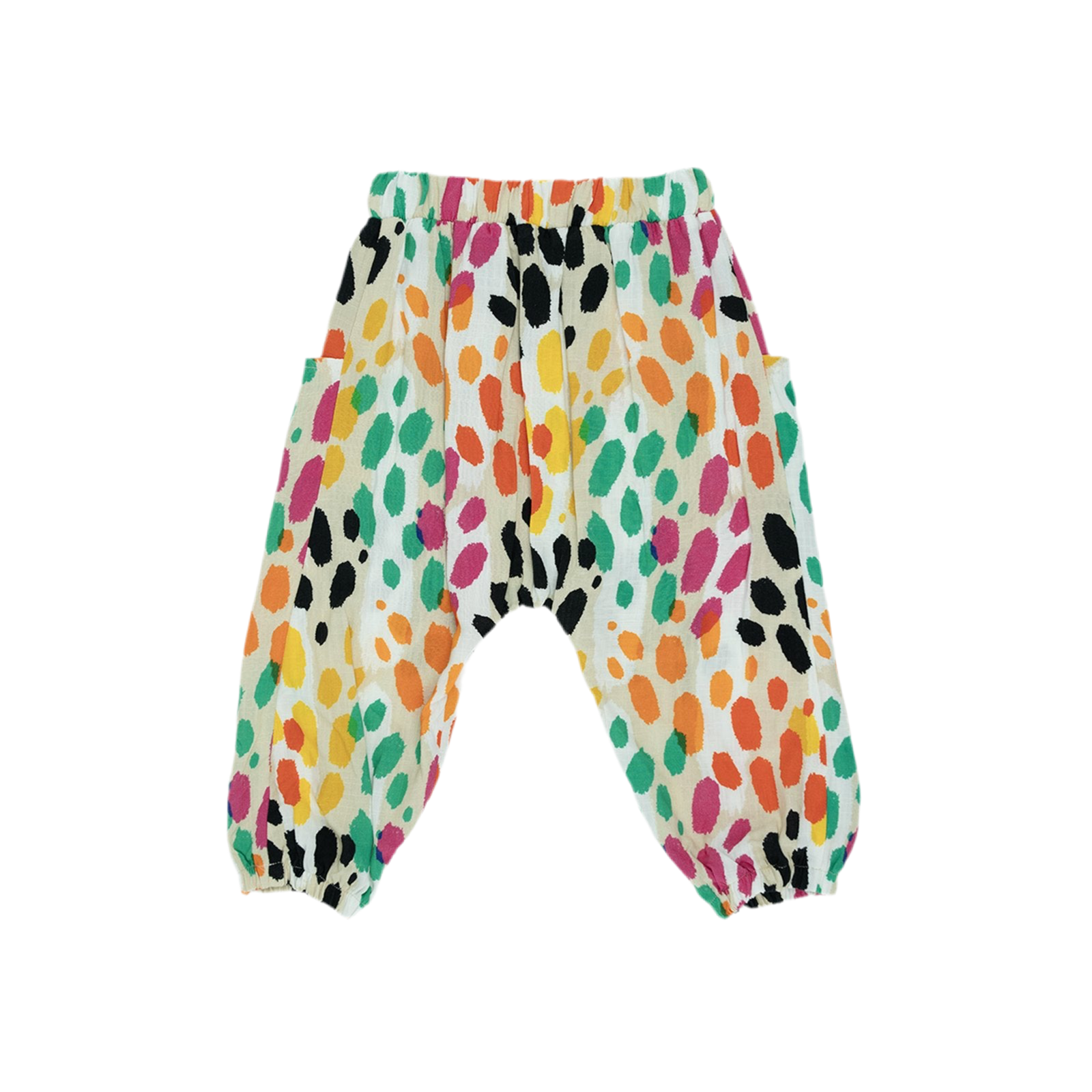 Pantalonii subtiri cu buline multicolore PANCO sunt alegerea ideală pentru micuțele exploratoare ale sezonului cald. Realizați din viscoză de calitate superioară, aceștia sunt atât confortabili, cât și eleganți. Designul cu buline multicolore aduce un strop de veselie în garderoba fiecărei fetițe, iar croiala lejeră asigură libertatea de mișcare pentru cele mai active zile. Cu un imprimeu digital și o talie normală, acești pantaloni sunt perfecți pentru activități zilnice și ocazii speciale.