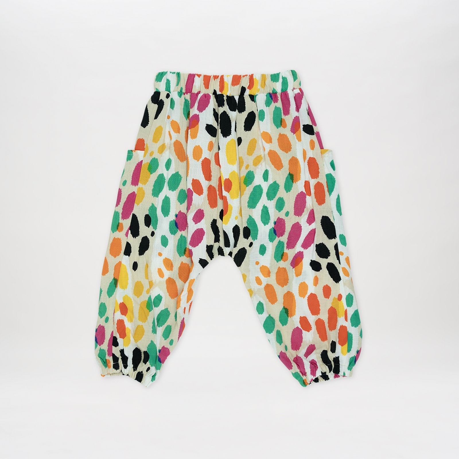 Pantaloni subtiri cu buline multicolore PANCO - Hope, Bej, pentru fetite