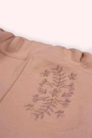 Modelul dungat subtil pe lungimea piciorului adaugă o notă modernă și elegantă, în timp ce broderia delicată de la buzunare aduce un plus de rafinament acestui design gândit cu grijă pentru micile domnișoare.
