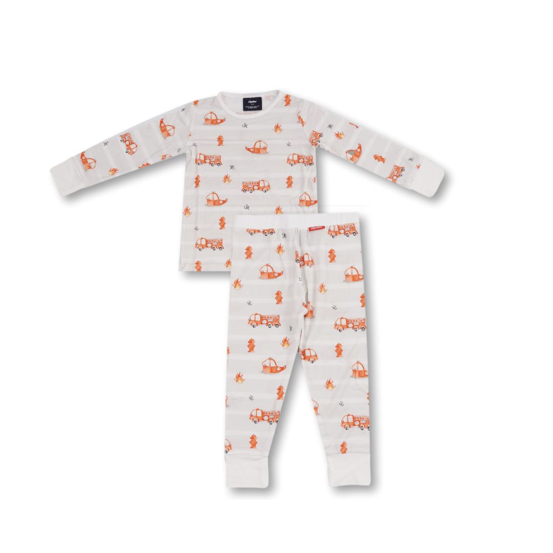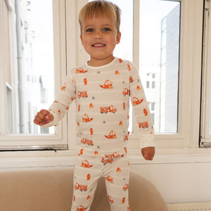 Pijamale 2 piese, material din bambus, ZIPSTER - FireTruck, Alb cu Portocaliu, pentru baieti