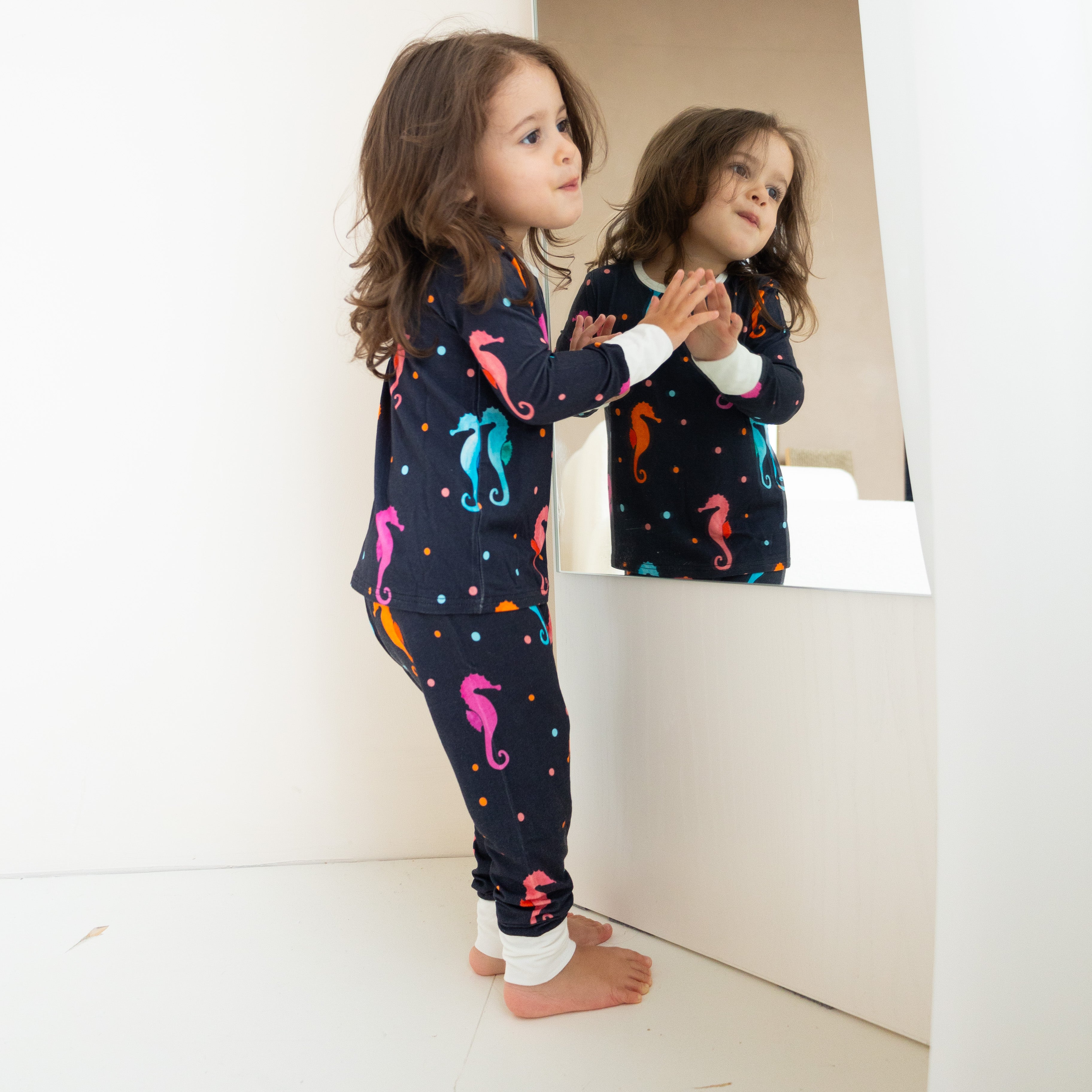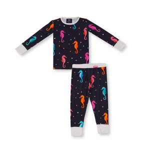 Pijamale 2 piese, material din bambus, ZIPSTER - SeaHorse, Bleumarin cu caluti de mare Multicolori, pentru fetite