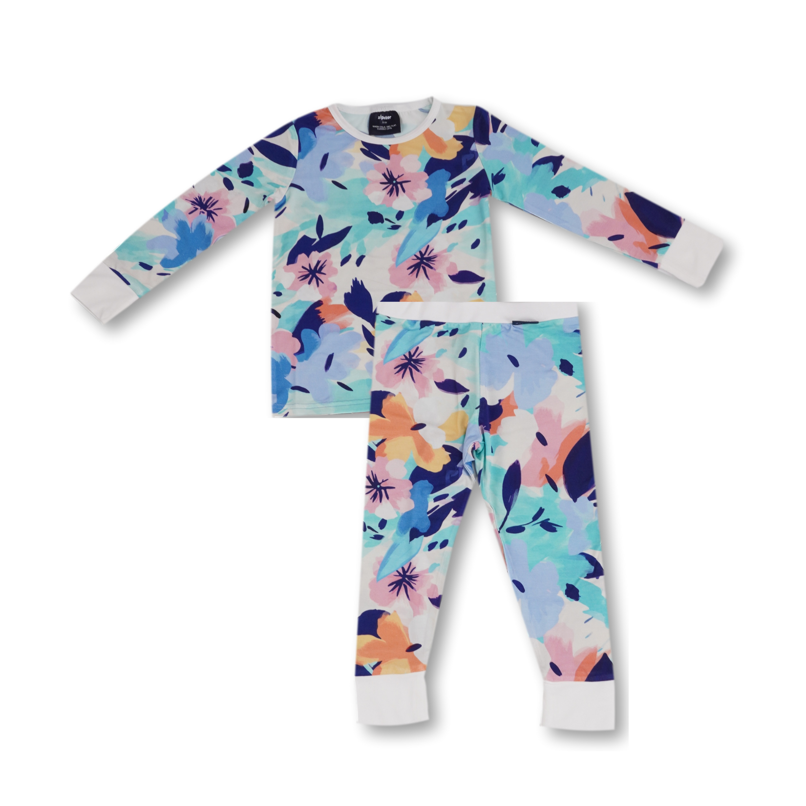 Pijamale 2 piese, material din bambus, model WaterColors, pentru bebe fetite