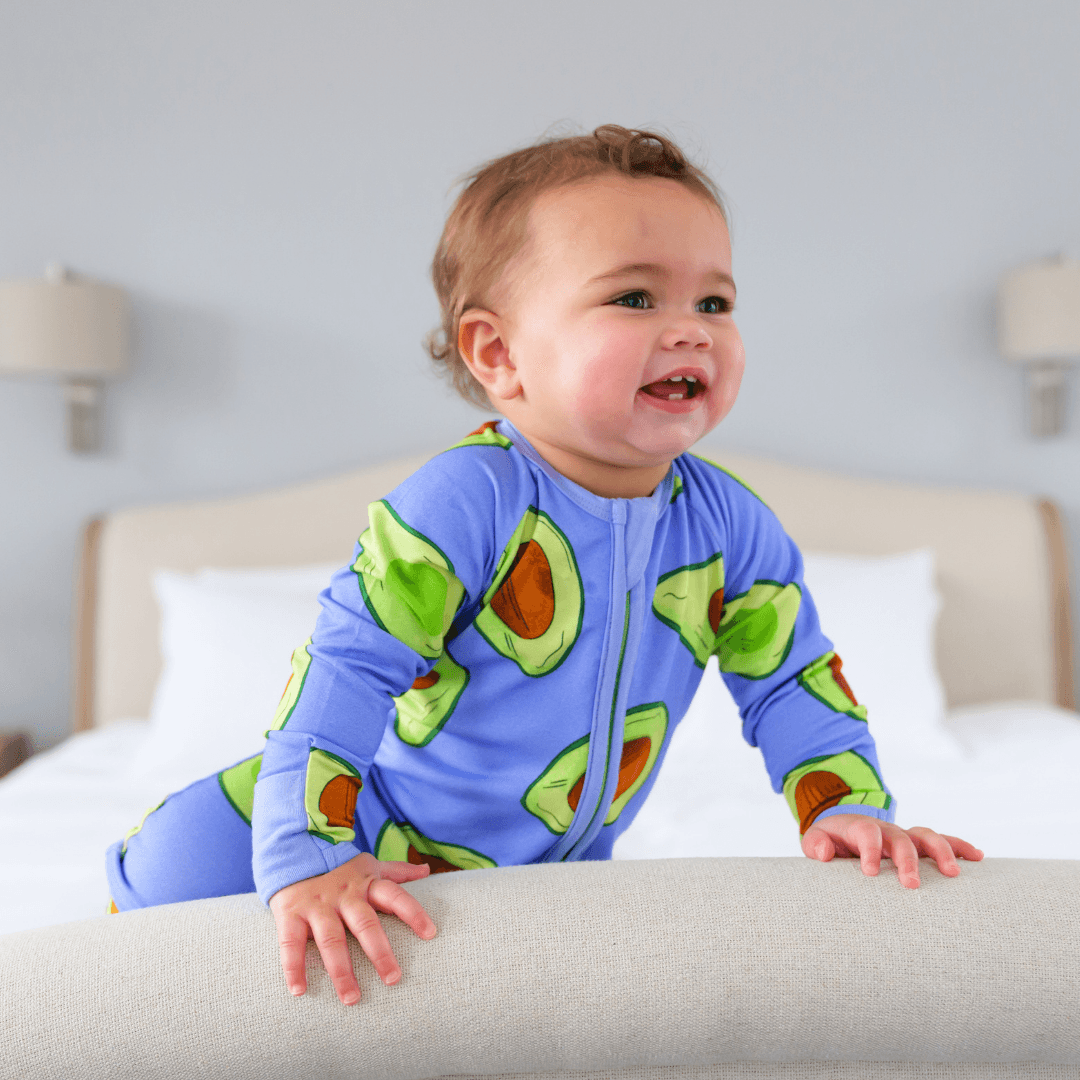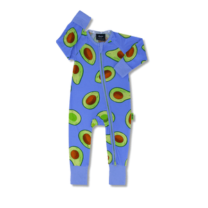 Pijamale lungi din bambus cu fermoar reversibil, Avocado, pentru bebe baieti