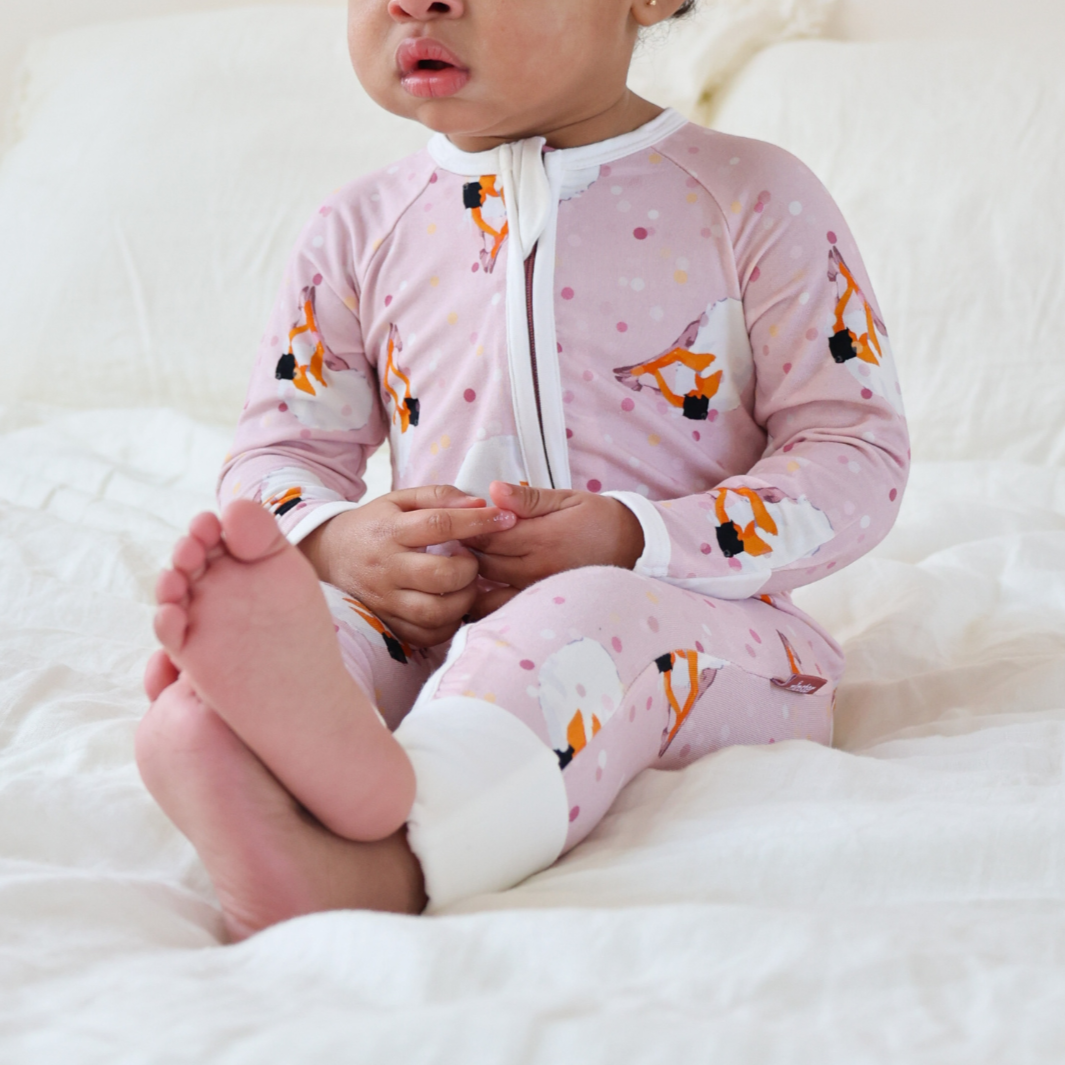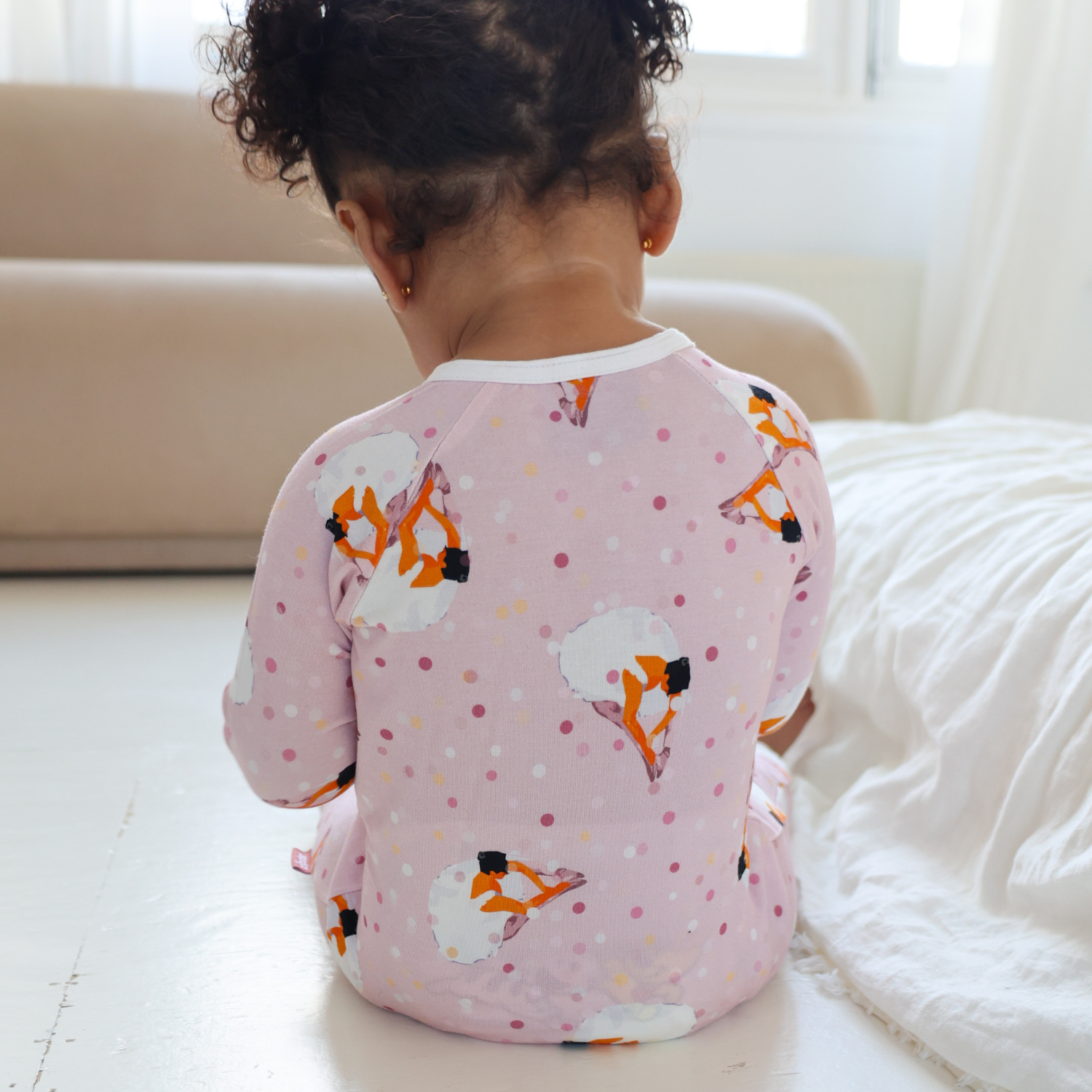 Pijamale lungi cu fermoar din bambus, ZIPSTER - Ballerina, Roz, pentru fetite