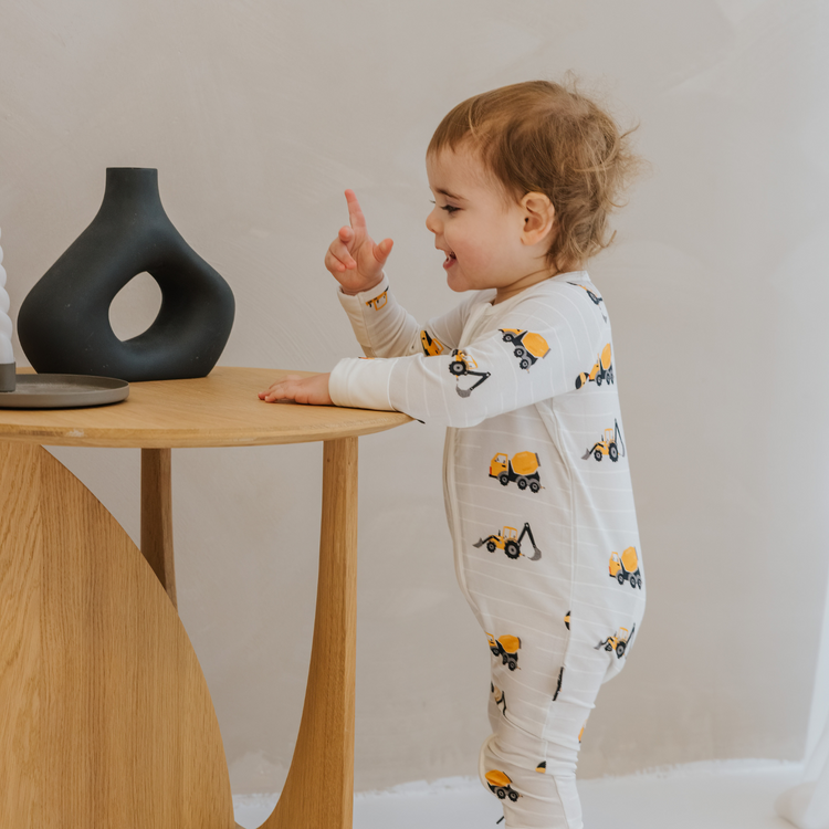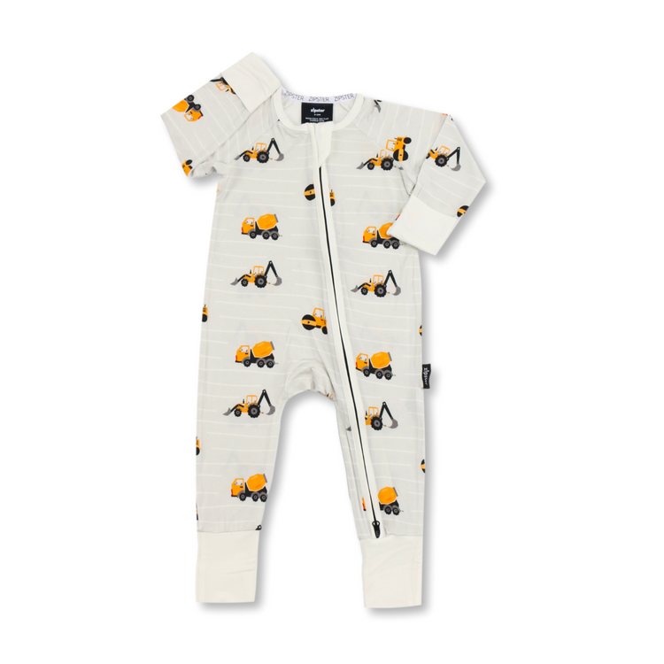 Pijamale lungi din bambus cu fermoar reversibil, ZIPSTER - Construction, Gri, pentru baieti