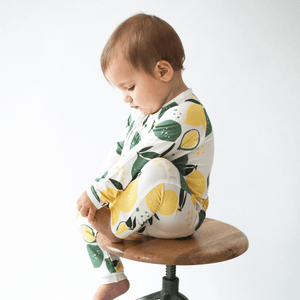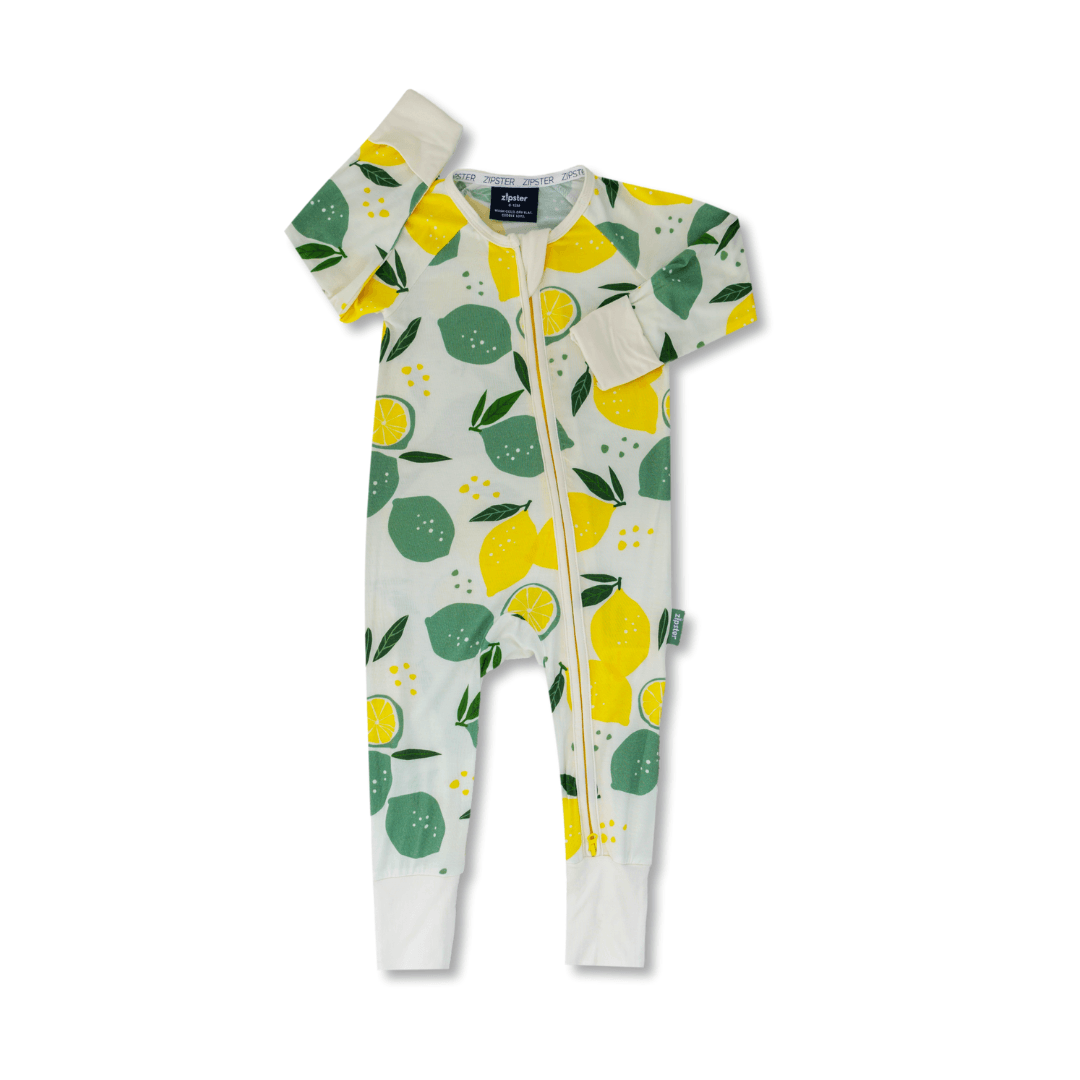Pijamale lungi din bambus cu fermoar reversibil, ZIPSTER - Lemons, Alb Verde Galben, pentru baieti