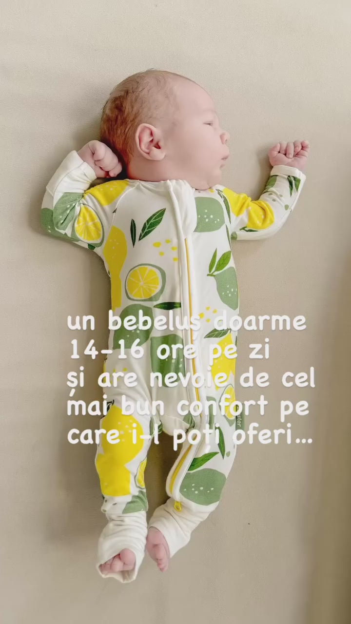 Datorita materialului usor si foarte fin la atingere, cat si a design-ului lejer al acestor pijamale, bebelusul tau se va putea simti lejer si confortabil indiferent daca doarme sau exploreaza imprejurimile casei. Acest material are efect de termoreglare a temperaturii corpului, astfel incat bebelusul nu va resimti diferentele de temperatura din mediul inconjurator (la caldura, materialul ofera senzatia de racoare, si invers.