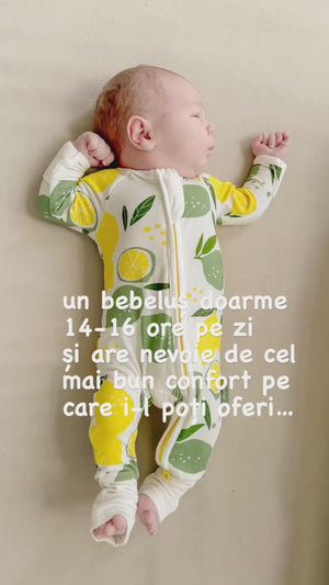 Pijamale lungi din bambus cu fermoar reversibil, Lemons, pentru bebe baieti