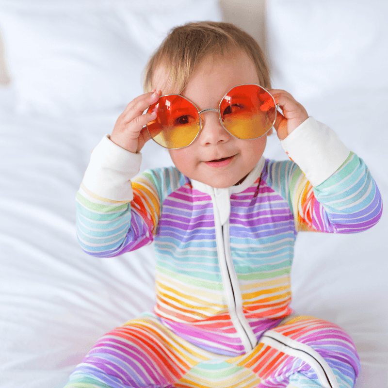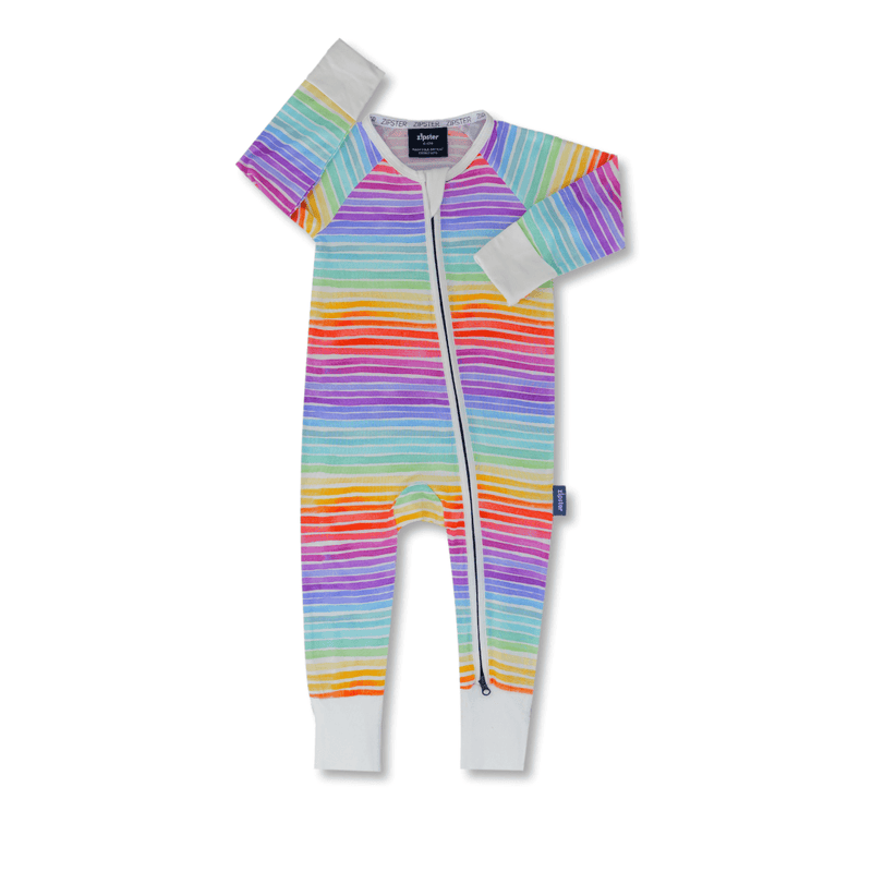Pijamale lungi din bambus cu fermoar reversibil, ZIPSTER - Rainbow, Multicolor, pentru fetite
