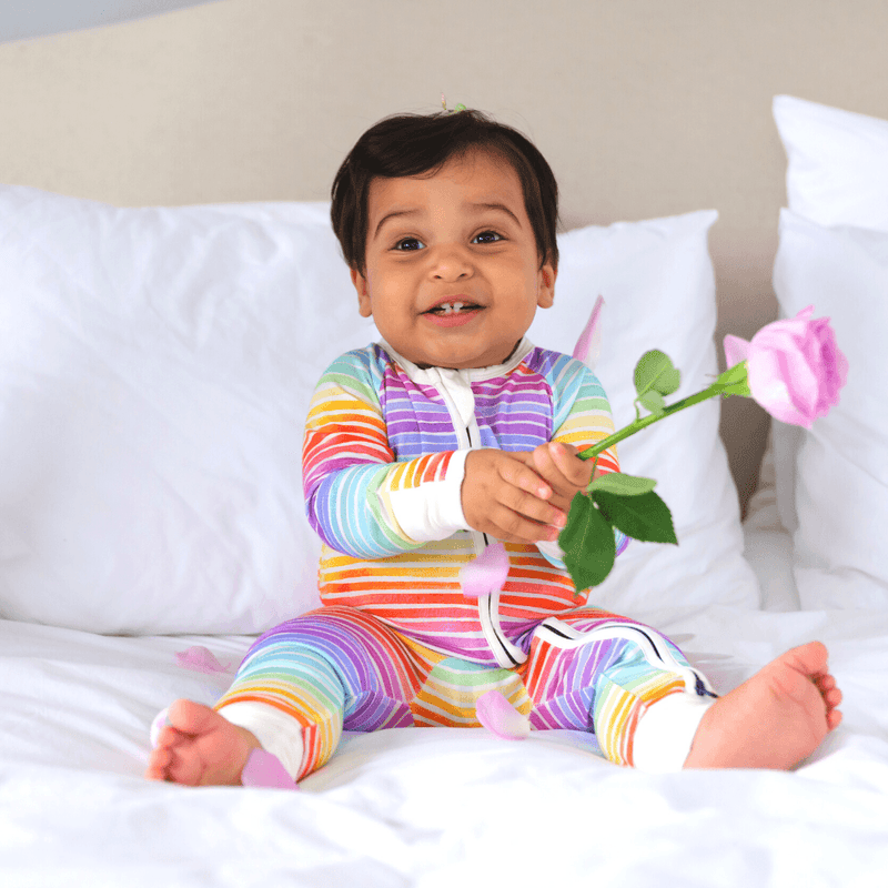 Pijamale lungi din bambus cu fermoar reversibil, Rainbow, pentru bebe fete
