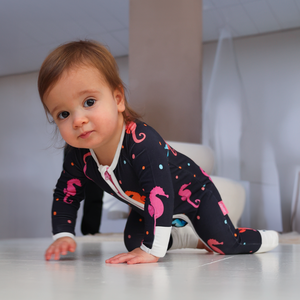 Pijamale lungi din bambus cu fermoar reversibil, SeaHorse, pentru bebe fete