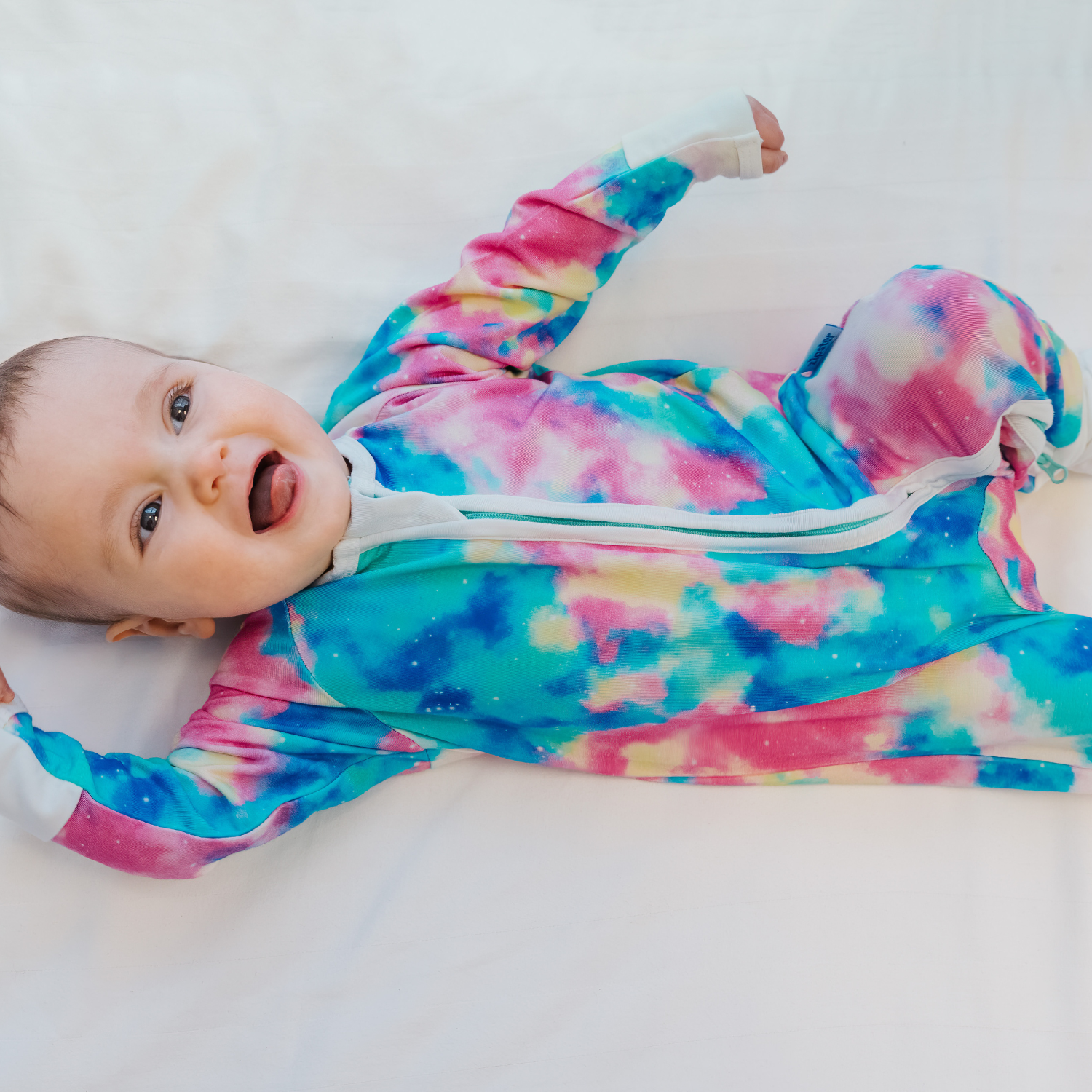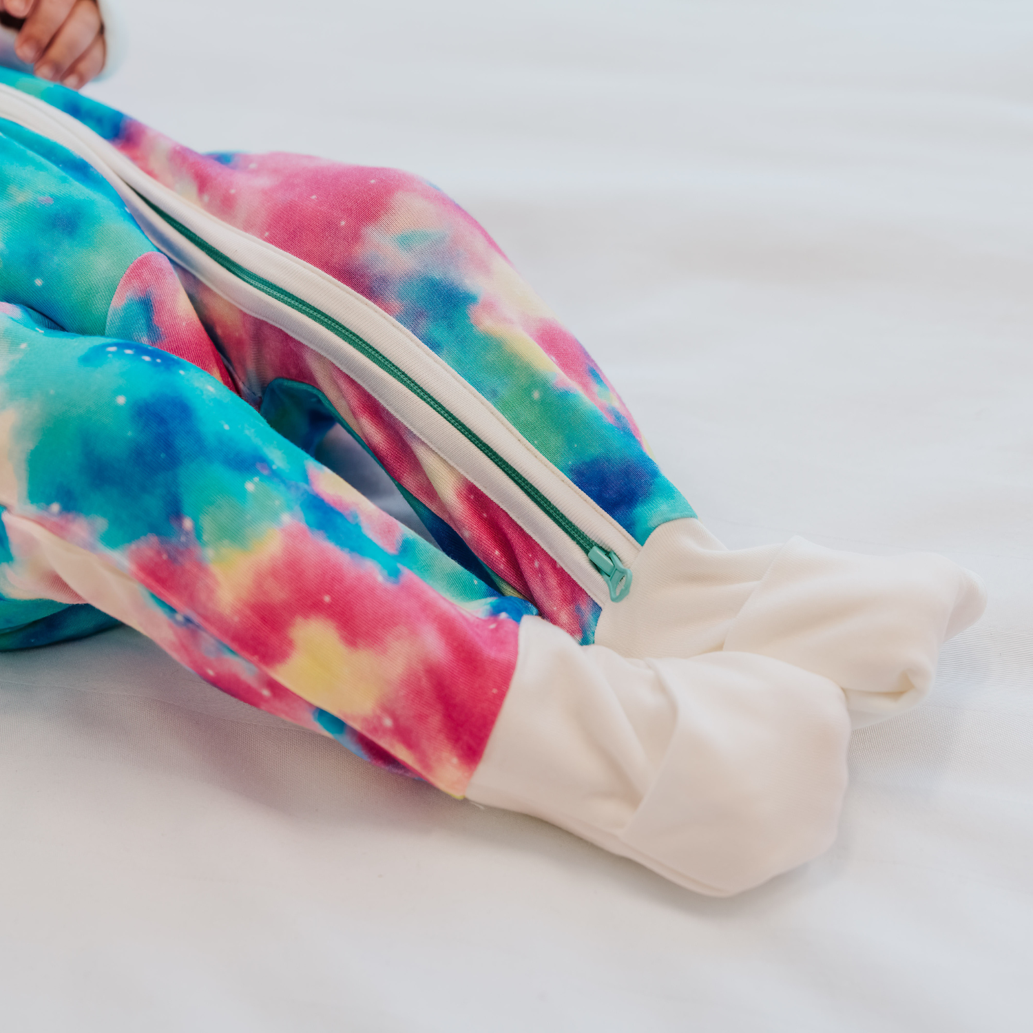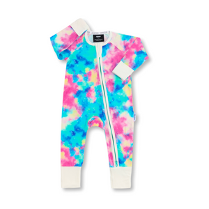 Pijamale lungi din bambus cu fermoar reversibil, Tie-Dye, pentru bebe fete