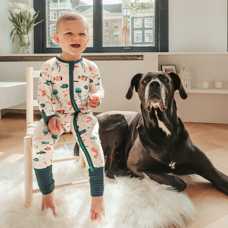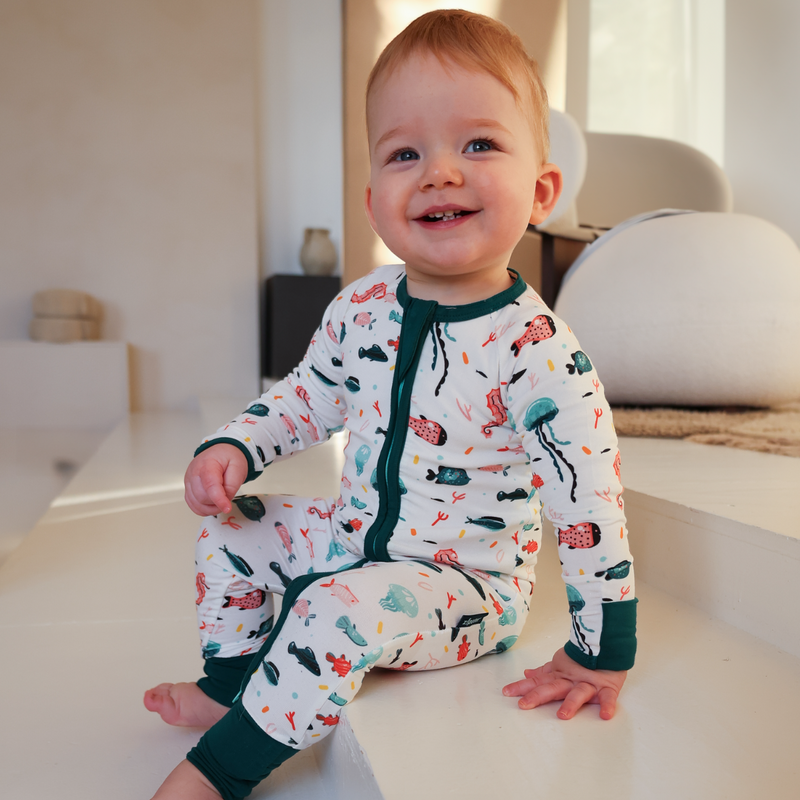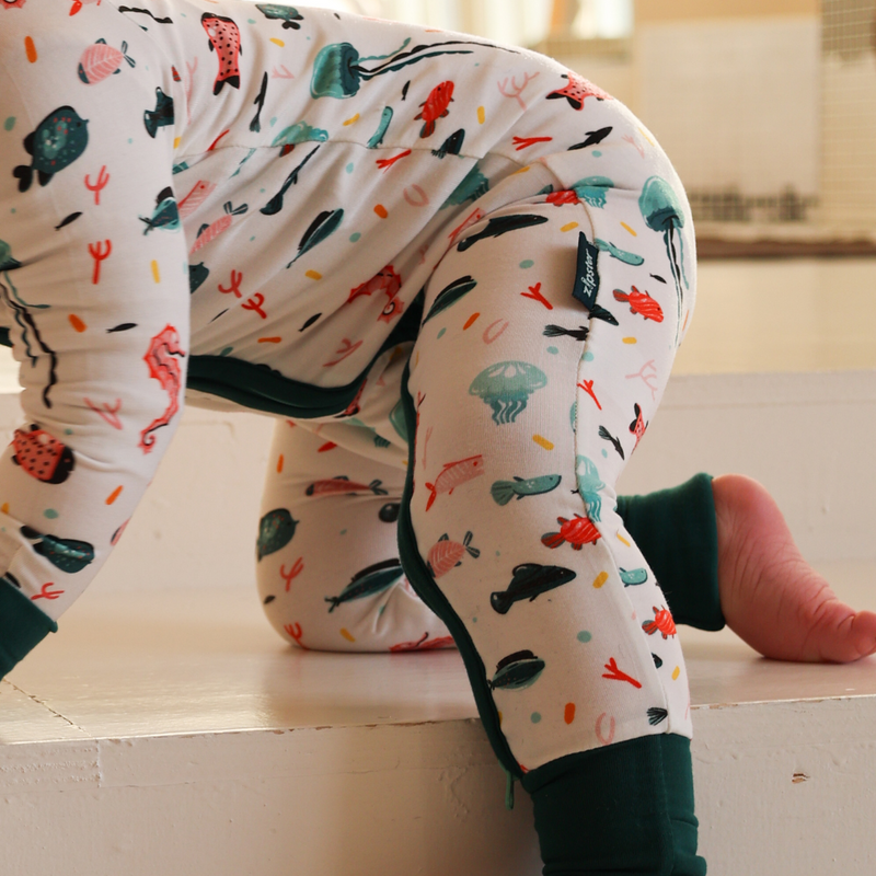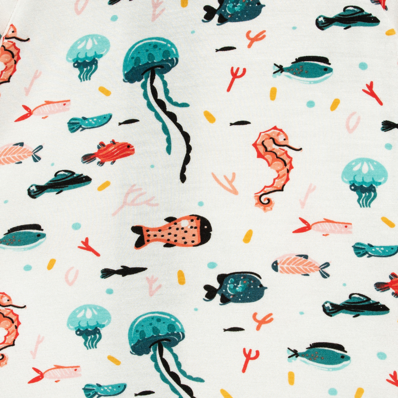 Pijamale lungi din bambus cu fermoar reversibil, Under The Sea, pentru bebe baieti si fete