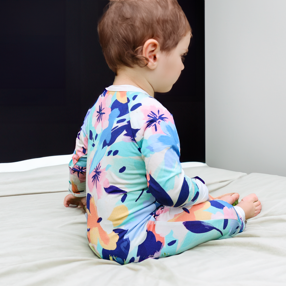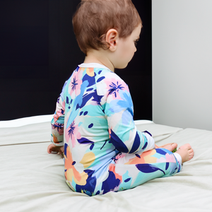 Pijamale lungi din bambus cu fermoar reversibil, WaterColors, pentru bebe fete