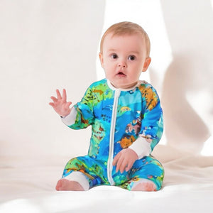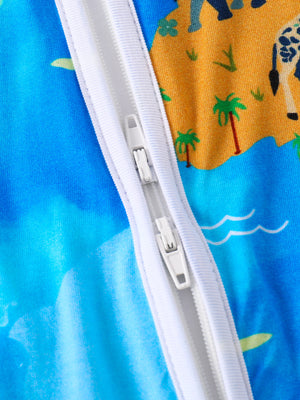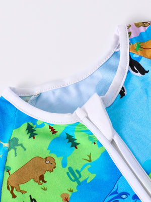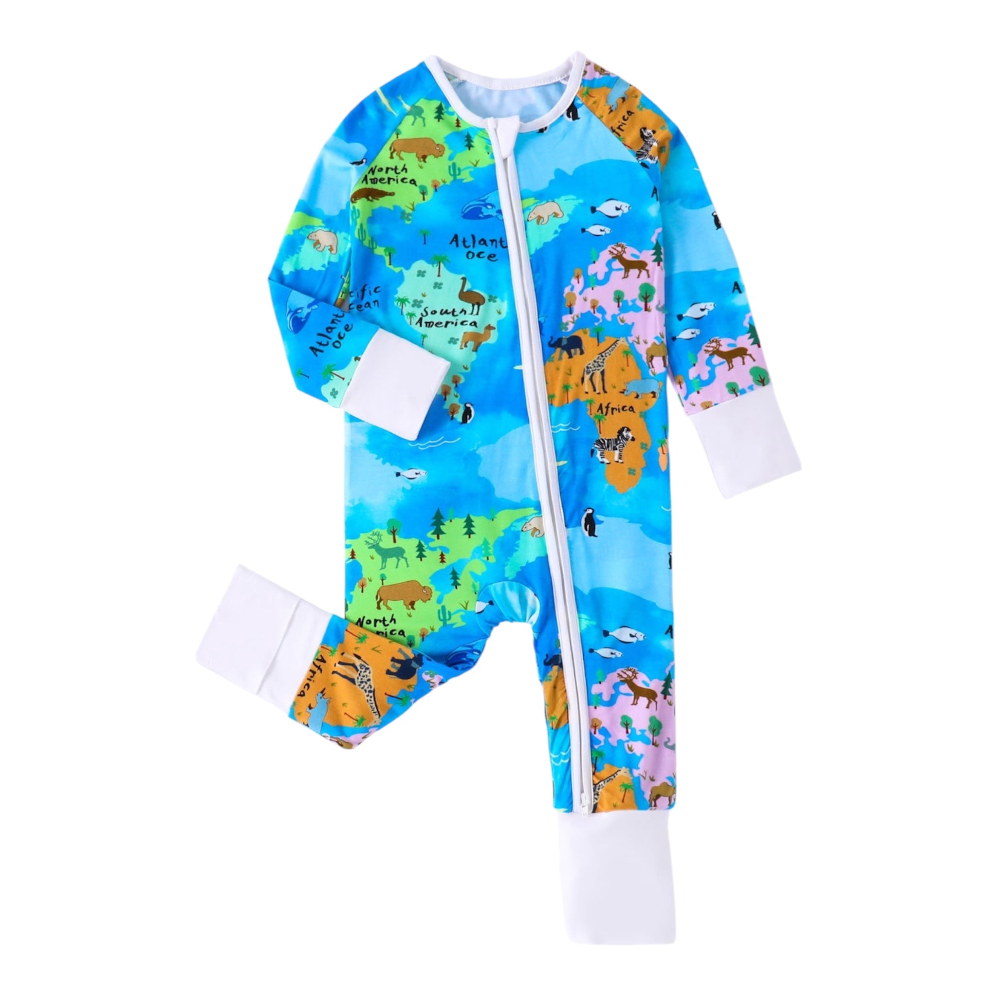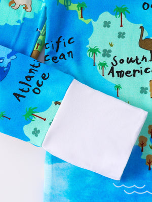 Pijamale lungi din bambus cu fermoar reversibil, Blue Continents , Albastru Electric, pentru baietei
