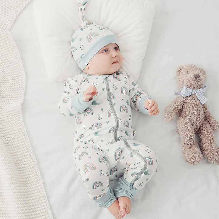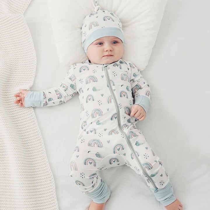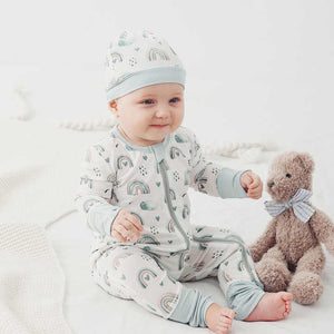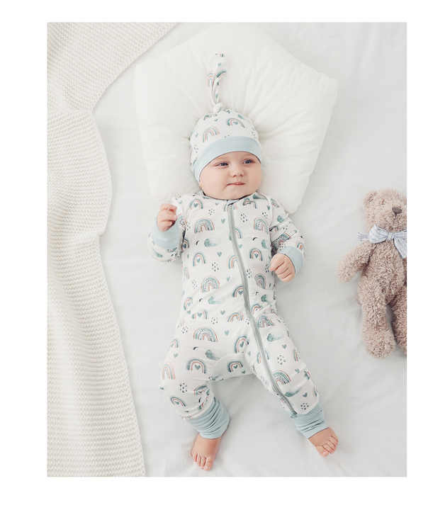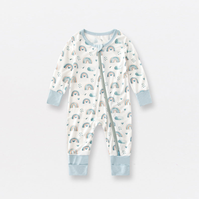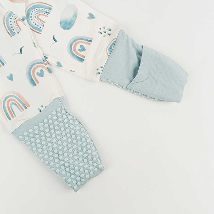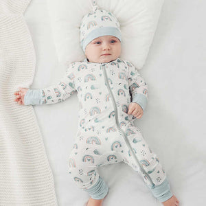 Pijamale lungi din bambus cu fermoar reversibil, Blue Rainbow, Blue, pentru fetite si baietei (caciulita nu este inclusa)