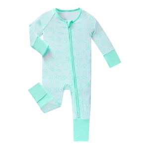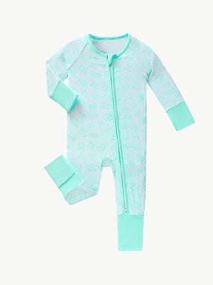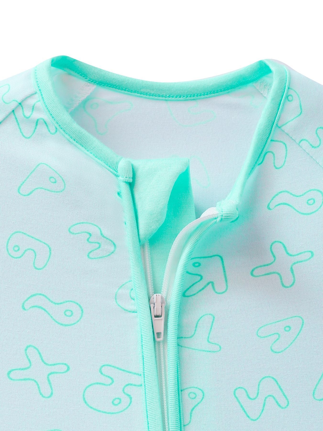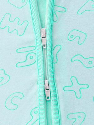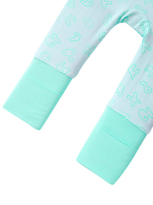 Pijamale lungi din bambus cu fermoar reversibil, Cute Numbers , Turcoaz, pentru fetite si baietei