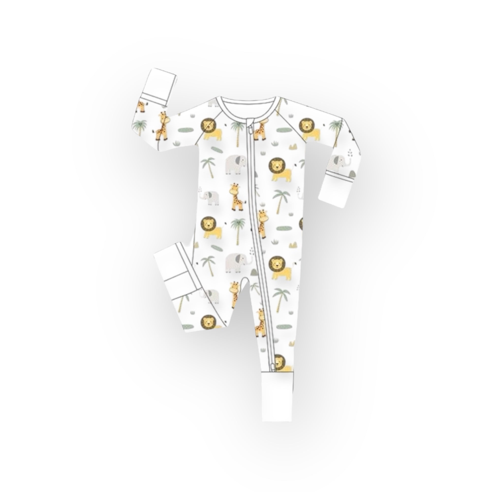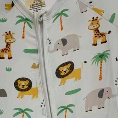 Pijamale lungi din bambus cu fermoar reversibil, Happy Zoo, Alb, pentru baietei