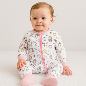 Aceasta pijama tip overall detine un fermoar in doua directii, cu capat ascuns, astfel incat experienta imbracatului bebelusului sa fie cat mai usoara si rapida atat pentru parinti cat si pentru confortul si rabdarea bebelusului. Fermoarul fiind ascuns, riscul de ranire a bebelusului este minim.