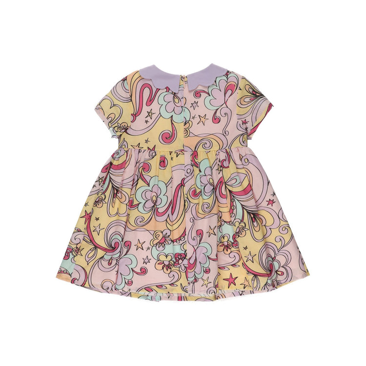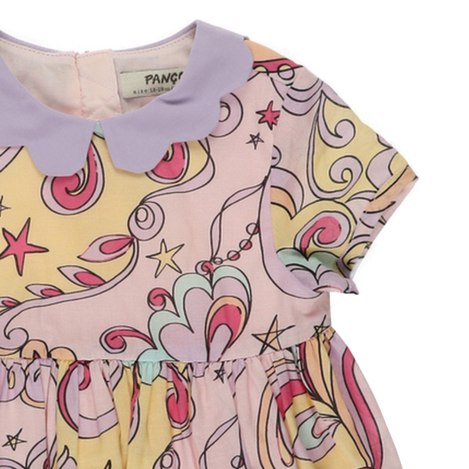 Rochie cu guler Mov si imprimeu multicolor PANCO - Star Light, Roz, pentru fetite
