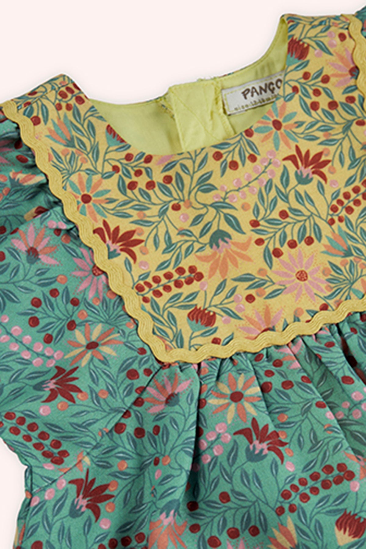O rochiță elegantă, cu un model floral delicat în nuanțe de verde și galben, perfectă pentru sezonul rece! Realizată 100% din bumbac, această rochiță oferă o senzație plăcută la atingere și asigură confort pe tot parcursul zilei.