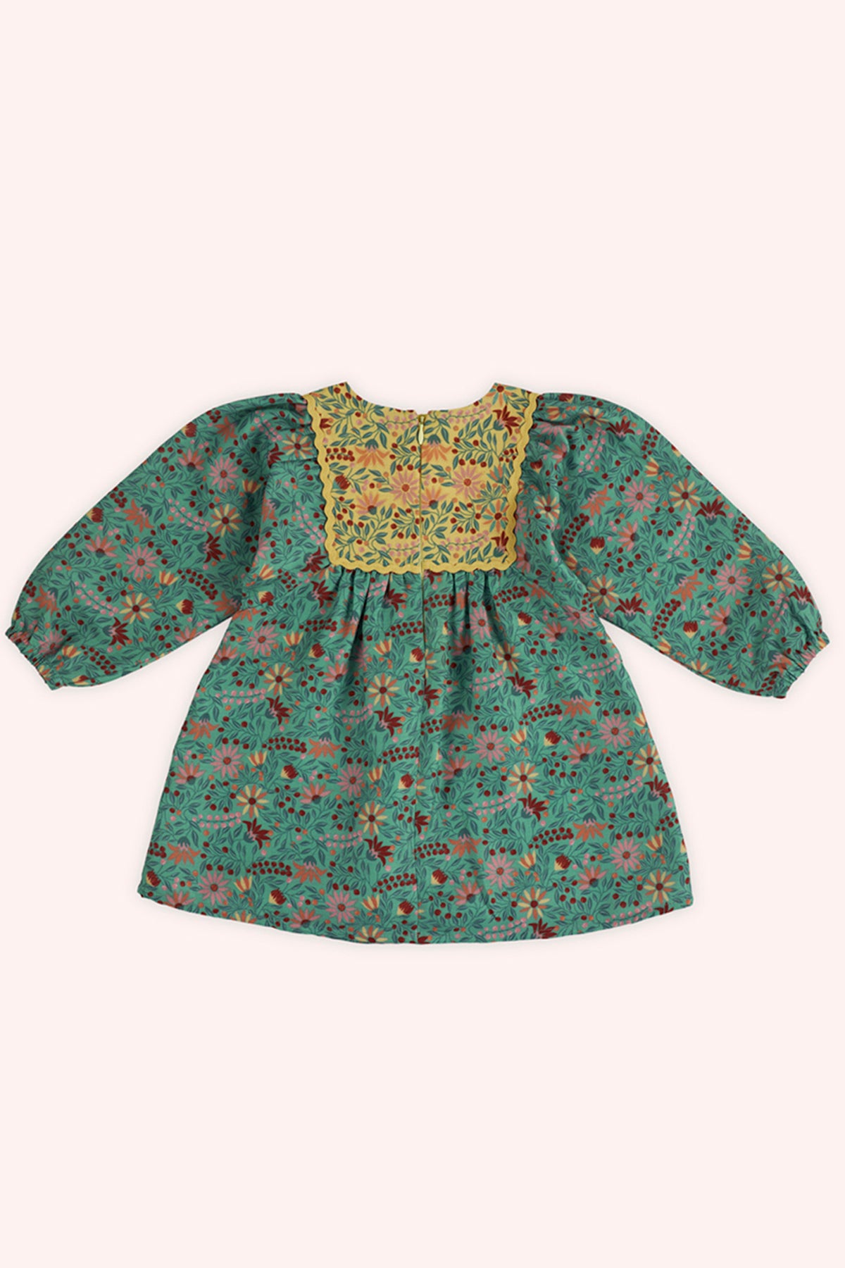 Rochie cu maneca lunga PANCO - Retro Journey, Verde & Galben, pentru fetite