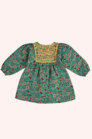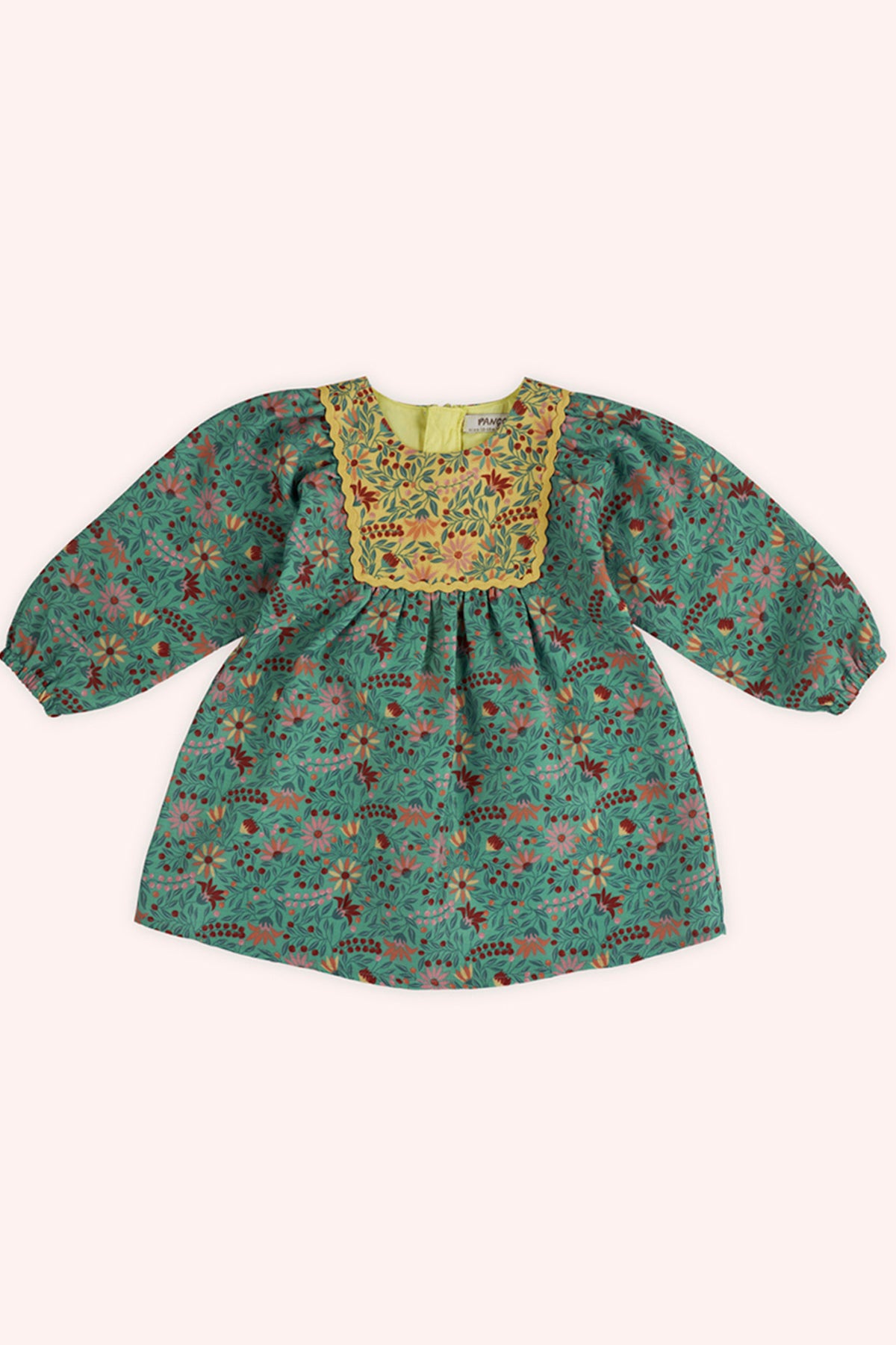 Rochie cu maneca lunga PANCO, Verde & Galben, pentru bebe fetite