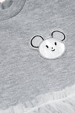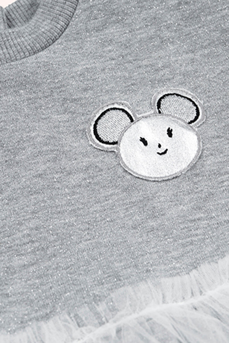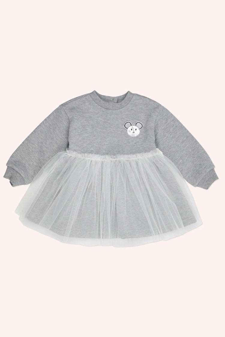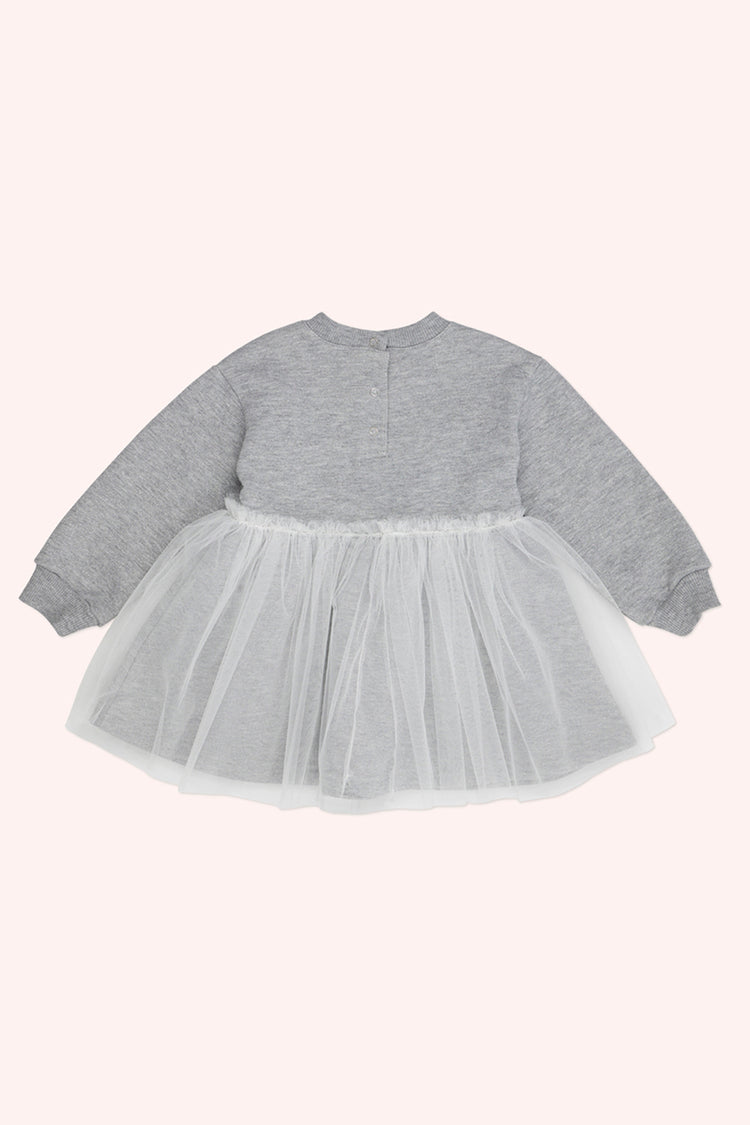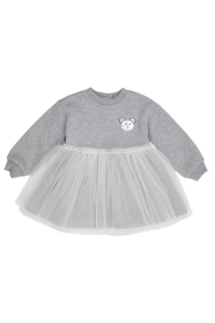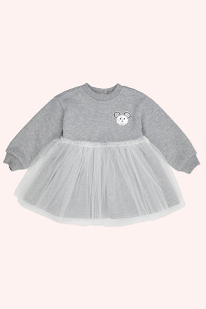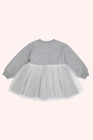 Rochie cu maneca lunga si iepuras, cu tull, PANCO - Little Ballerina, Gri Melanje, pentru fetite