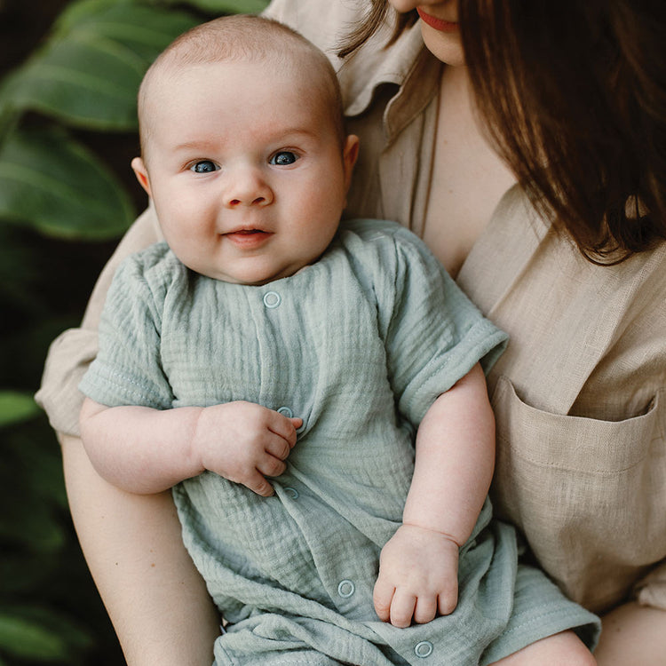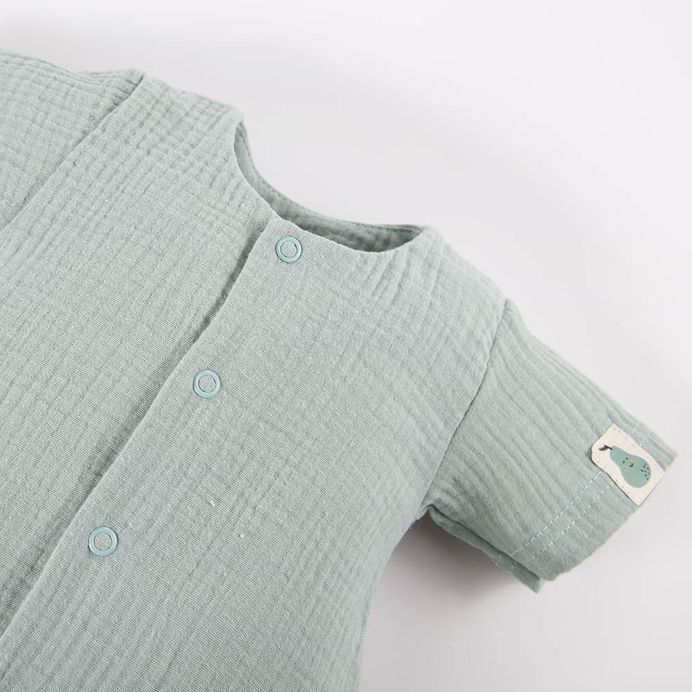 Descoperiti Salopeta scurta din muselina, EEVI - Pearlfect, Verde Pacific, pentru baieti, perfecta pentru a oferi confortul si finetea de care micutii dumneavoastra au nevoie. Fabricata din muselina 100%, aceasta salopeta este ideala pentru baietii cu varste cuprinse intre 3-6 luni si pana la 2 ani, oferind o senzatie de usurare si racoare adaptata sezonului de vara si primavara.