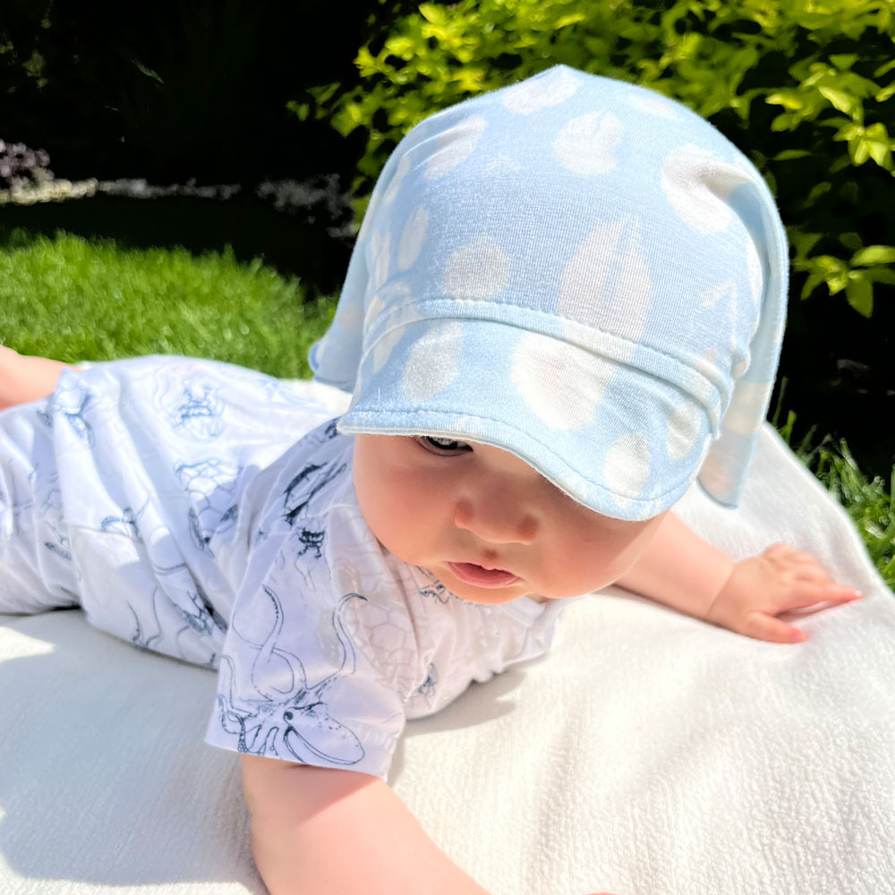 Sapca din bambus, EEVI, Bleu si Alb, pentru fetite si baietei