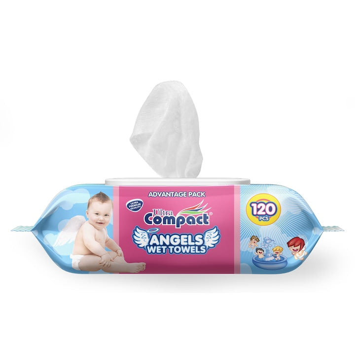 Servetele umede cu capac - ANGELS BABY, 0% alcool și parabeni, pentru bebelusi, 120 buc