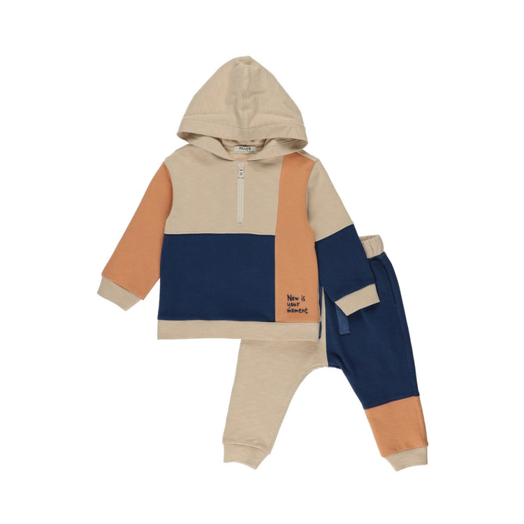 Set trening 2 piese, hanorac si pantaloni PANCO - Moments, Bej, pentru bebe baietei