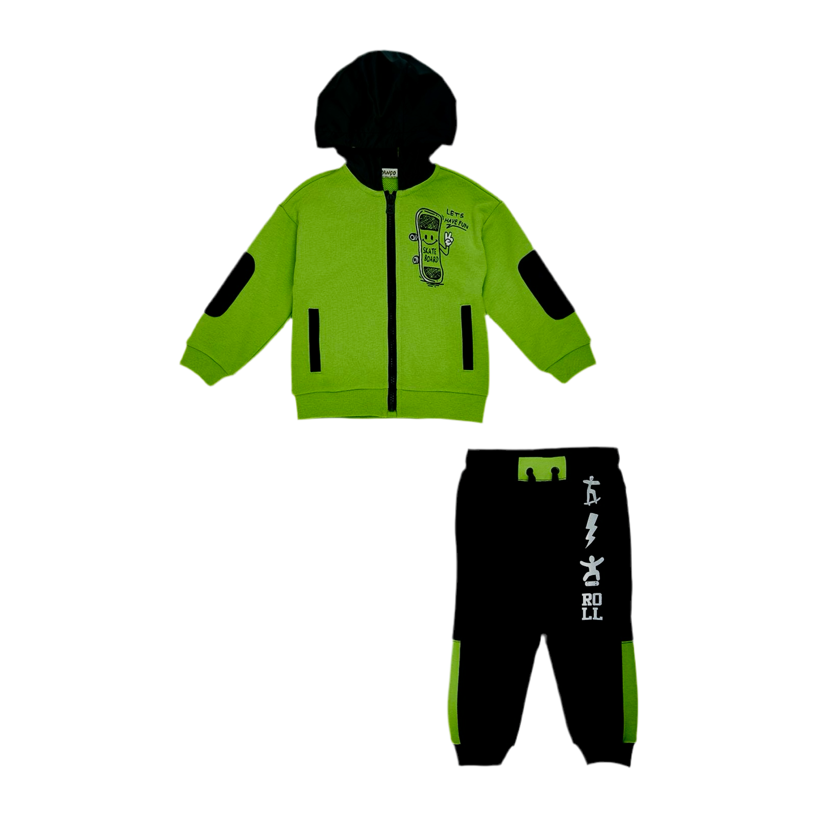 Set 2 piese sport, hanorac si pantaloni PANCO - Natural Power, Verde & Negru, pentru baietei