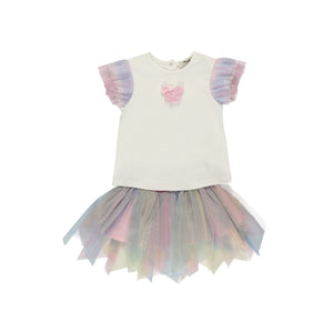 Set 2 piese: tricou si fusta tutu din tulle PANCO - Rainbow, Multicolor, pentru fetite