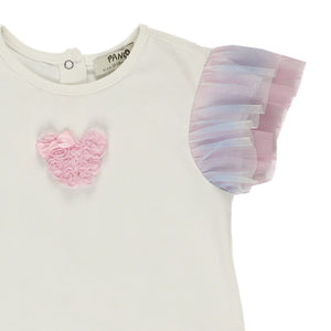 Setul 2 piese: tricou si fusta tutu din tulle PANCO - Rainbow, Multicolor, pentru fetite este ideal pentru a asigura confortul copiilor mici in zilele calduroase de vara. Tricoul realizat din bumbac si elastan ofera lejeritate si permite pielii sa respire, in timp ce fusta tutu adauga o nota de veselie si farmec oricarei tinute.