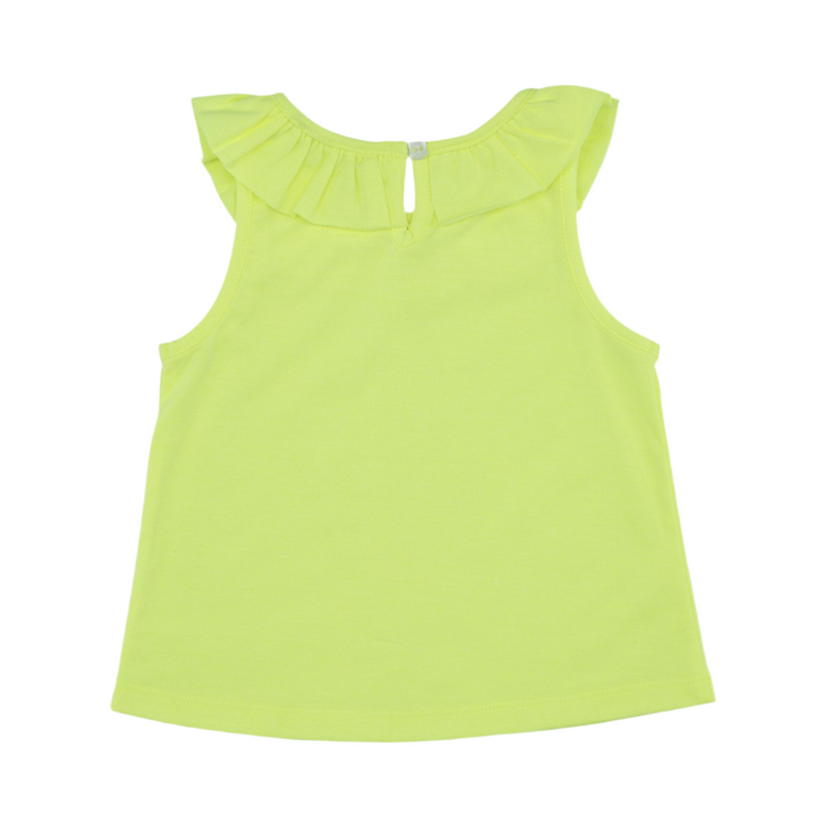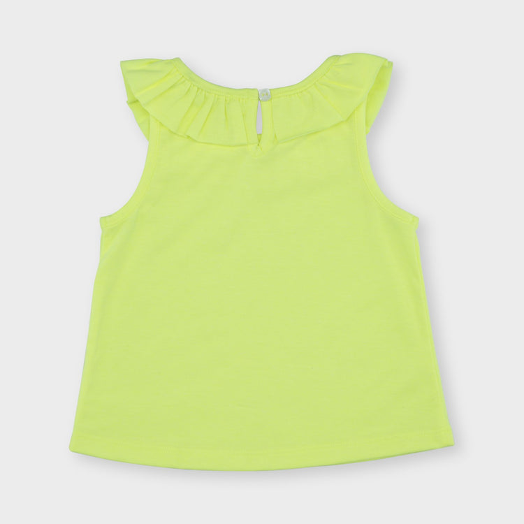 Designul fara maneci al topului ofera libertate de miscare, perfect pentru micutele energice aflate in plina explorare a lumii. Culoarea galben fosforescent adauga un plus de veselie si este usor de asortat cu alte piese vestimentare.
