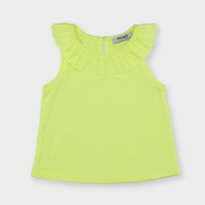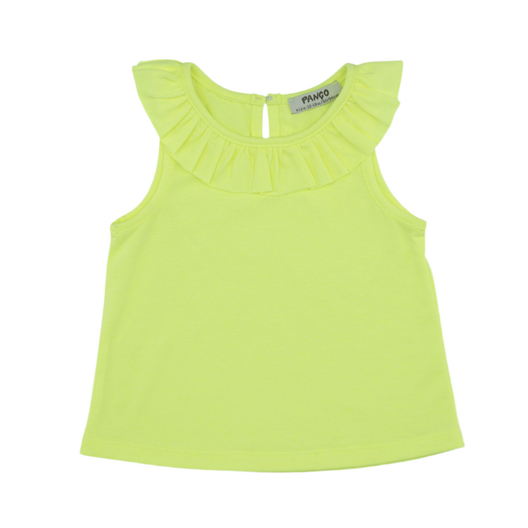 Imbraca-ti micuta cu eleganta si confortul topului cu guler tip volan PANCO - din colectia Elena. Acest top galben fosforescent este special creat pentru fetite si este perfect pentru a adauga o nota vesela oricarei tinute de sezon.
