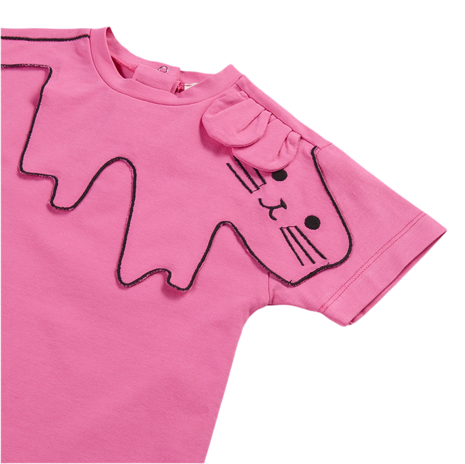 Tricou cu guler brodat pisicuta PANCO - Hope, Fucsia, pentru fetite