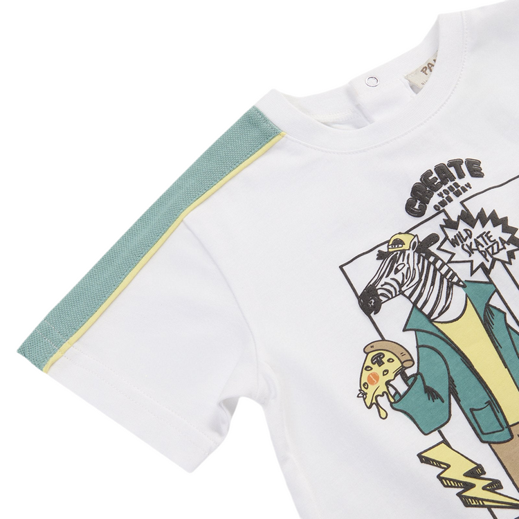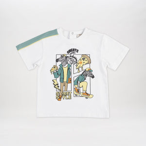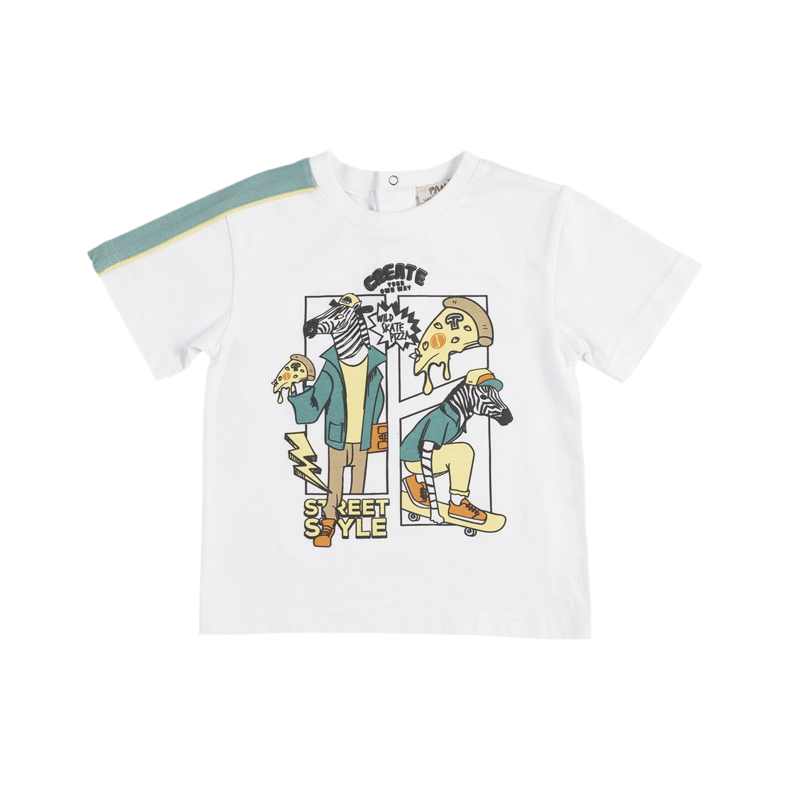 Tricou cu imprimeu zebra PANCO - Super Skater, Alb, pentru baietei