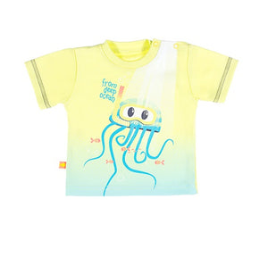 Tricou cu model caracatita, EEVI - Summer Time, Galben si Turcoaz, pentru baieti