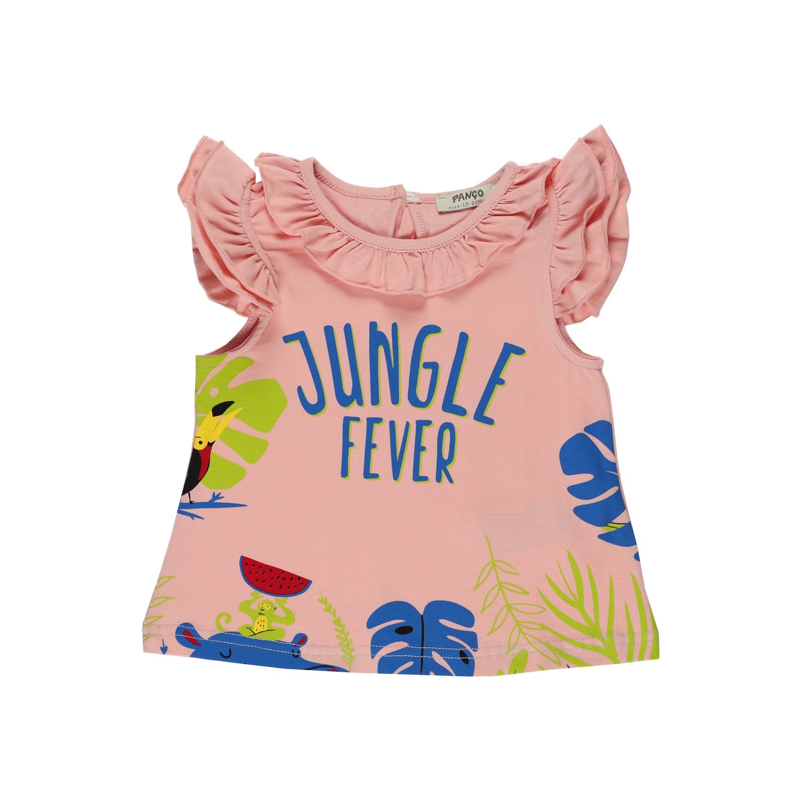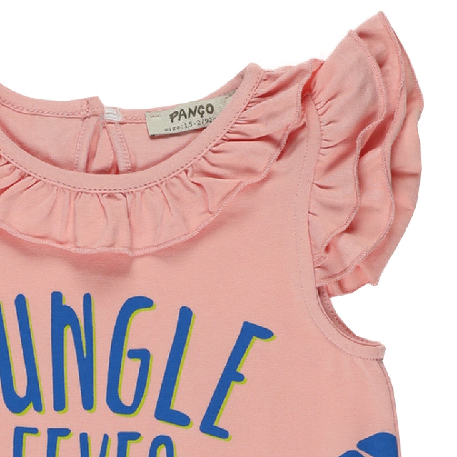 Tricou cu volane la guler si maneci PANCO - Jungle, Somon, pentru fetite