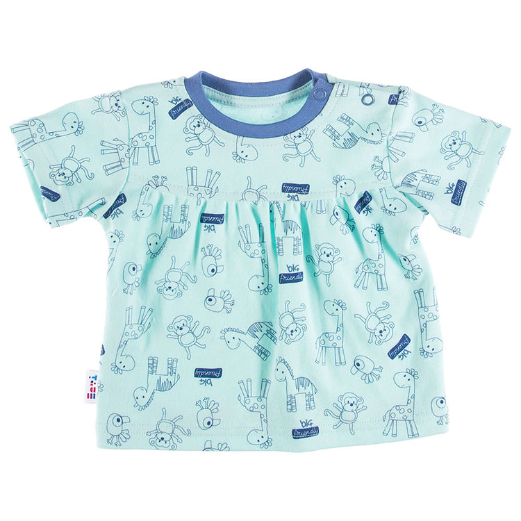 Descopera noul tricou EEVI - Savanna, Albastru Turcoaz, special creat pentru fetitele de pana la 3 ani. Fabricat in Polonia, acest tricou asigura confortul si siguranta pielii sensibile a celor mici, datorita materialului de calitate superioara.
